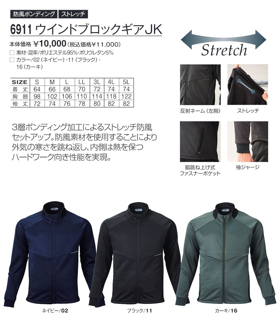 6911 ウィンドブロックギアJK(防風ボンディング・ストレッチ)
