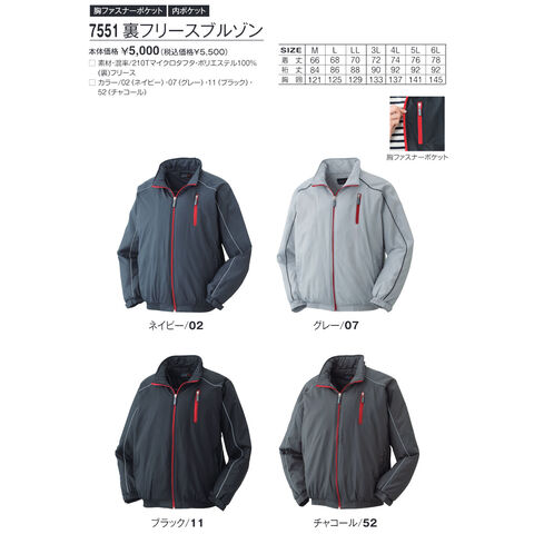 7551 裏フリースブルゾン(胸ファスナーポケット・内ポケット付き)