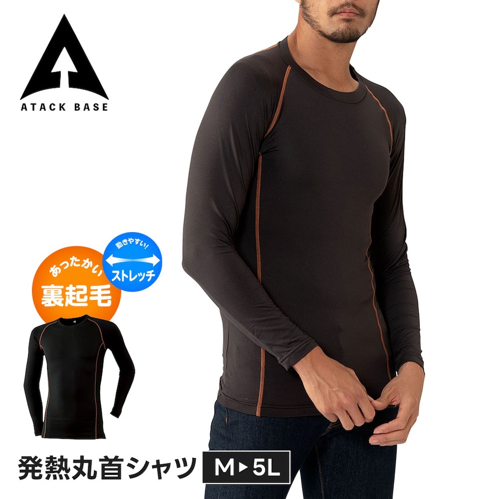 アタックベース 作業服 防寒 インナー メンズ 長袖 温かい あったか 冬 クルーネック 丸首 インナーシャツ 暖かい 防寒着 防寒服 アンダーウェア 87515