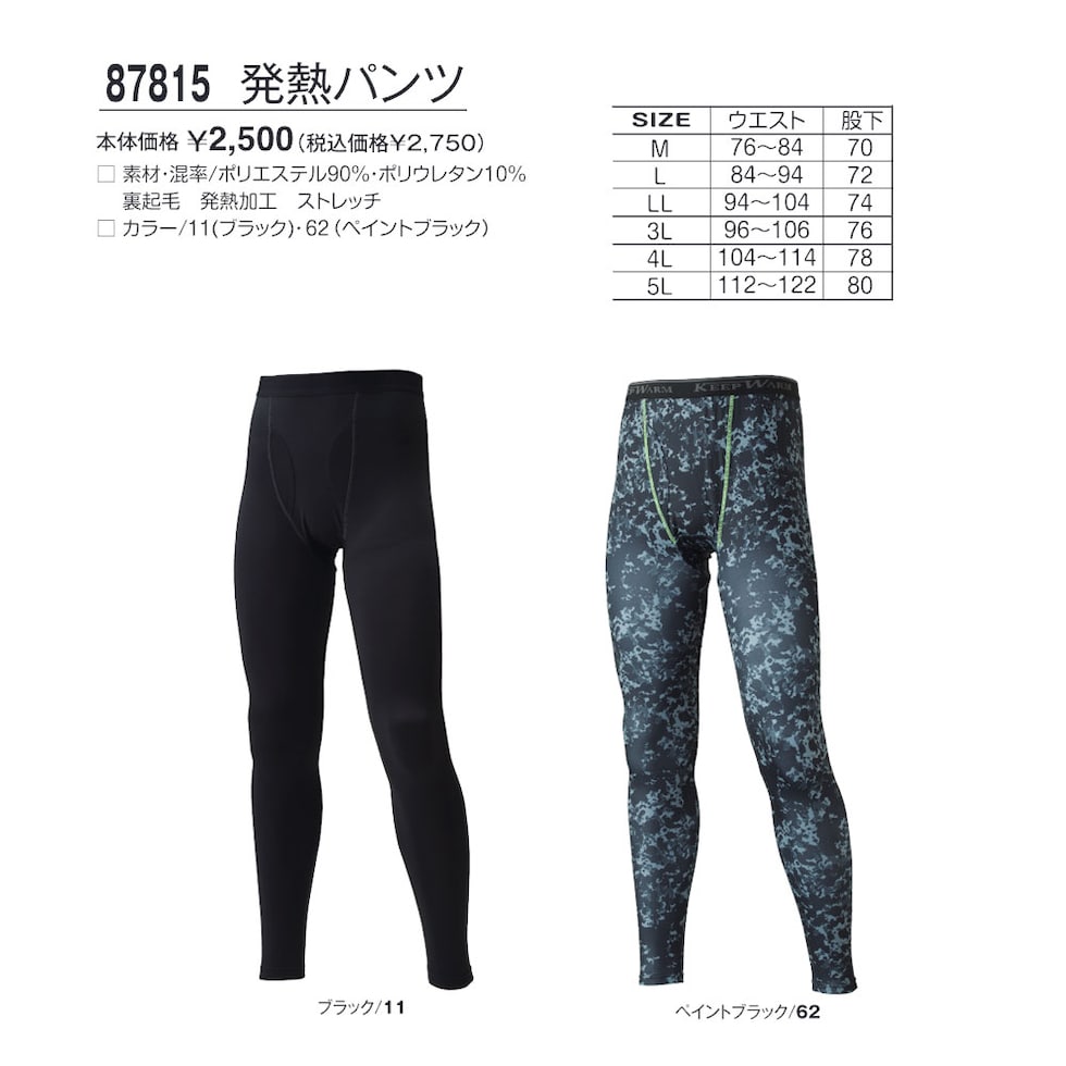 87815 発熱パンツ(裏起毛・発熱加工・ストレッチ)