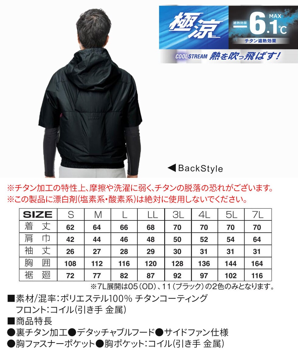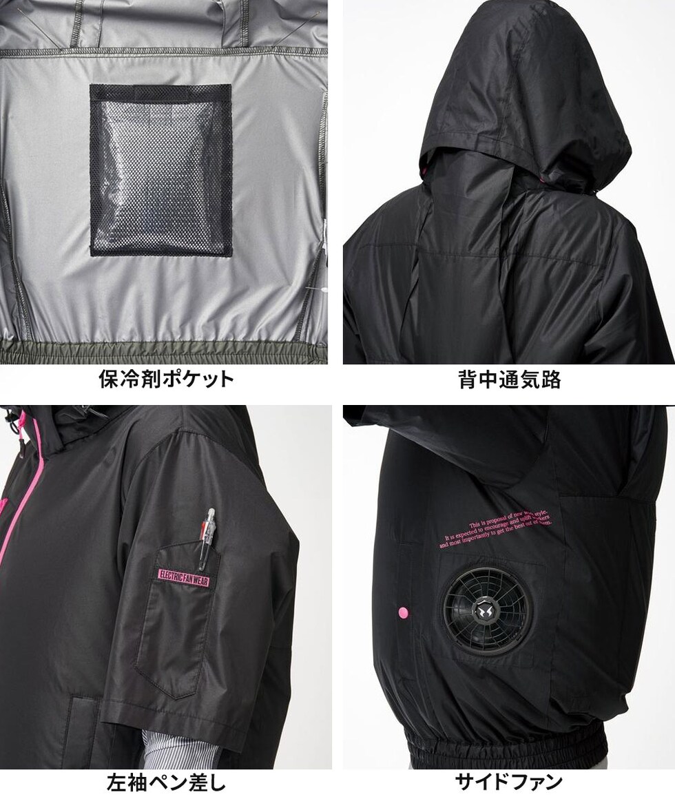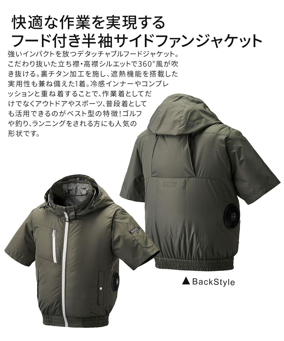 空調風神服 EFウェア チタンフード半袖ブルゾン ファン対応ウェア 極涼 撥水 遮熱 作業着 熱中症対策 涼しい アタックベース The tough