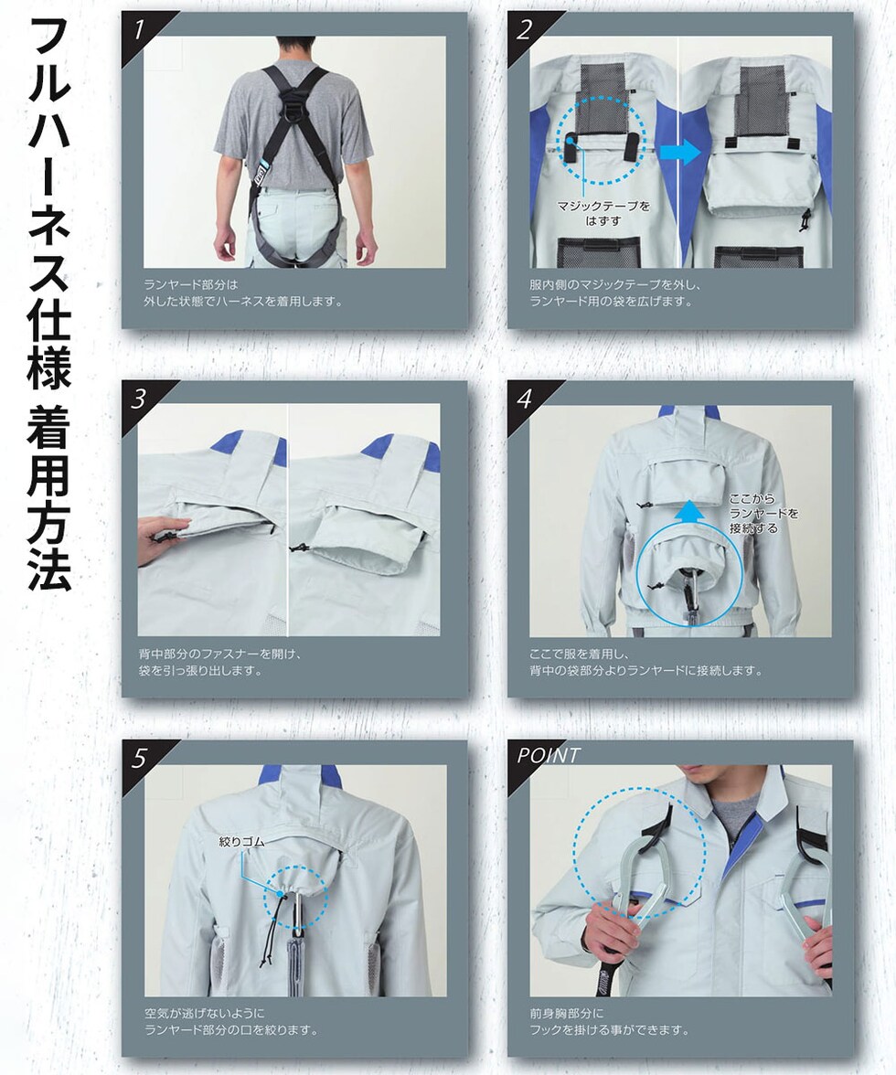 クイックフリーファスナー搭載 フルハーネス仕様の長袖タイプ。