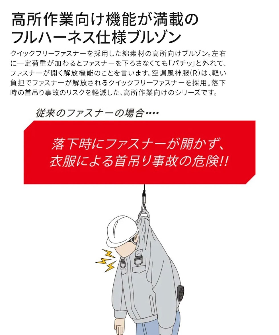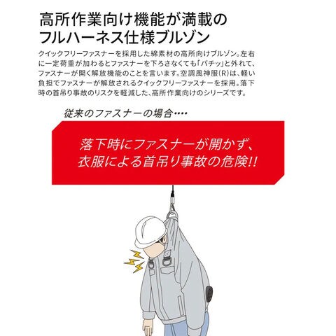 ■高所作業向け フルハーネス対応 クイックフリーファスナーを採用した綿素材の高所向けブルゾン