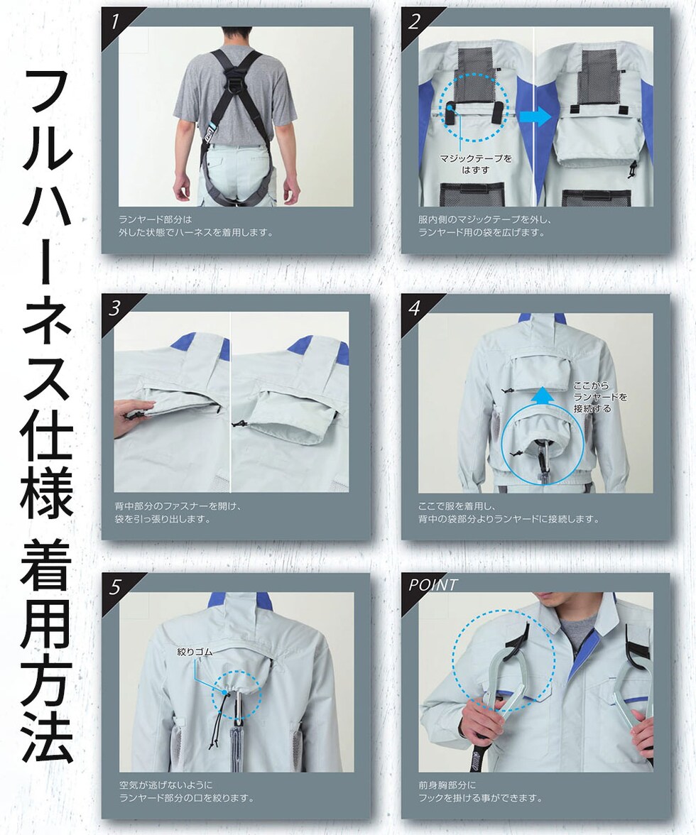クイックフリーファスナー搭載 フルハーネス仕様の長袖タイプ。