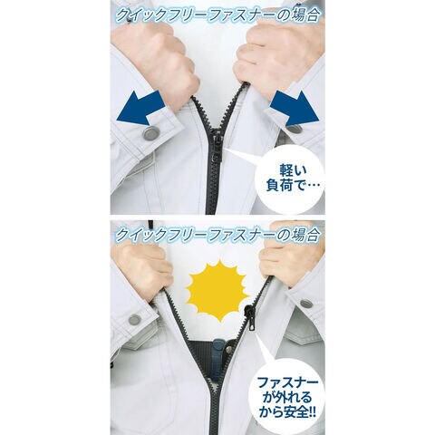 空調風神服(R)は、軽い負担でファスナーが解放されるクイックフリーファスナーを採用。