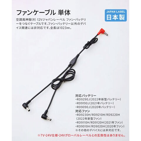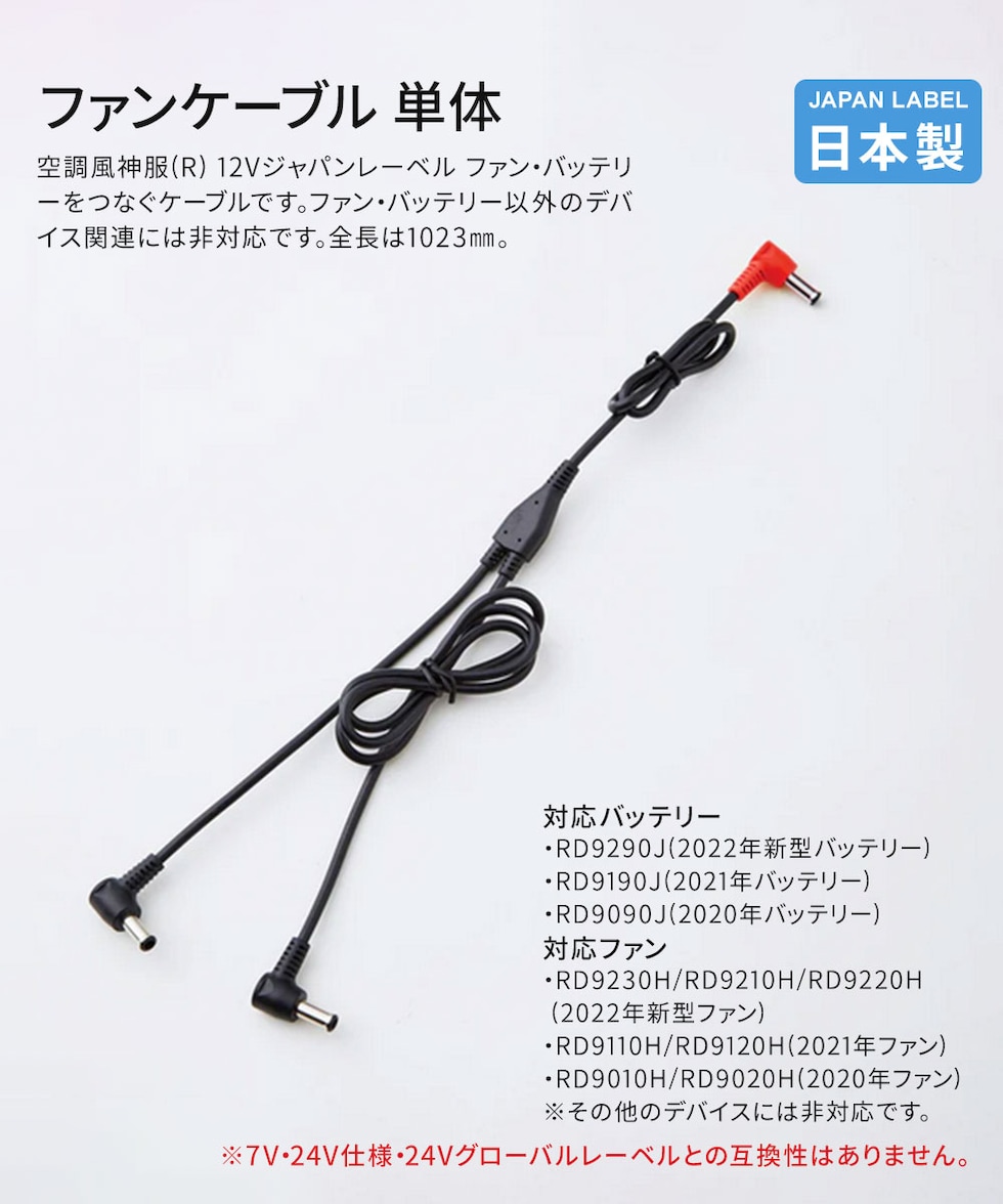 ファンケーブル 単体 Japan Label 12V仕様 ファン バッテリー ディバイス SUN-S サンエス アタックベース EFウェア 空調風神服
