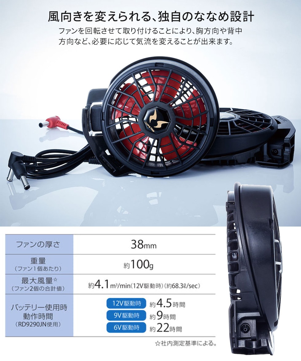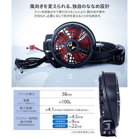 空調風神服 EFウェア 12V仕様 ハイパワーファンセット(ななめタイプ) 2個 大風量 サンエス 2025 正規品 アタックベース RD9210HN