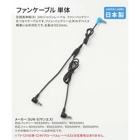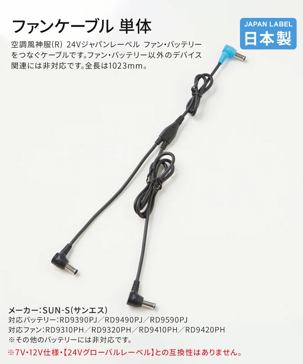 空調風神服ファンケーブル 単体 Japan Label 24V仕様 全長1023 空調服ディバイス SUN-S サンエス アタックベース EFウェア