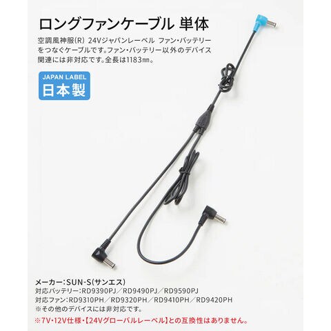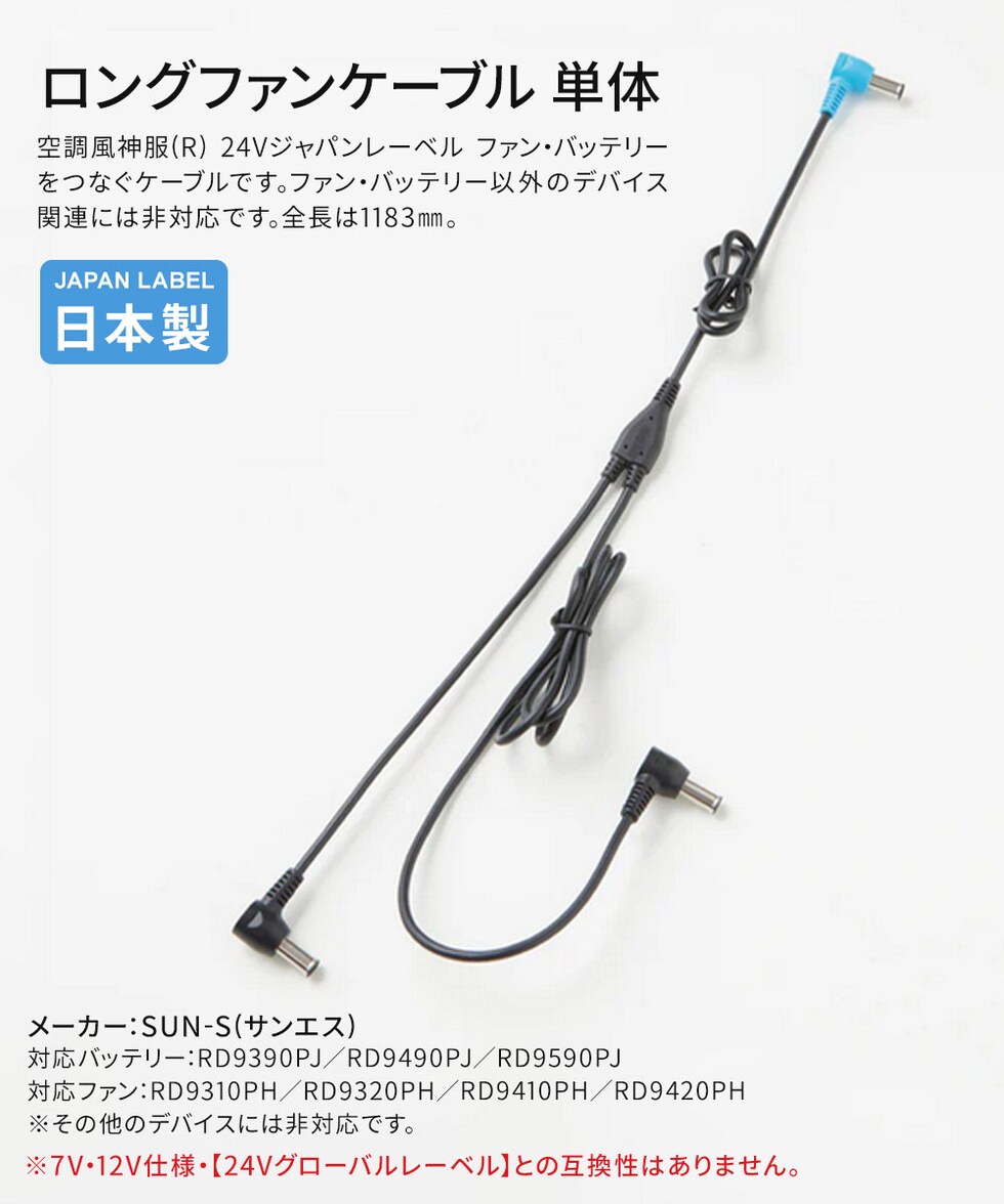 ロングファンケーブル 単体 JapanLabel 24V仕様 空調服ディバイス SUN-S サンエス アタックベース EFウェア 空調風神服用ケーブル