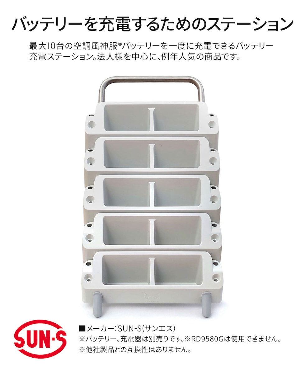 ■最大10台の空調風神服?バッテリーを一度に充電できるバッテリーステーション。