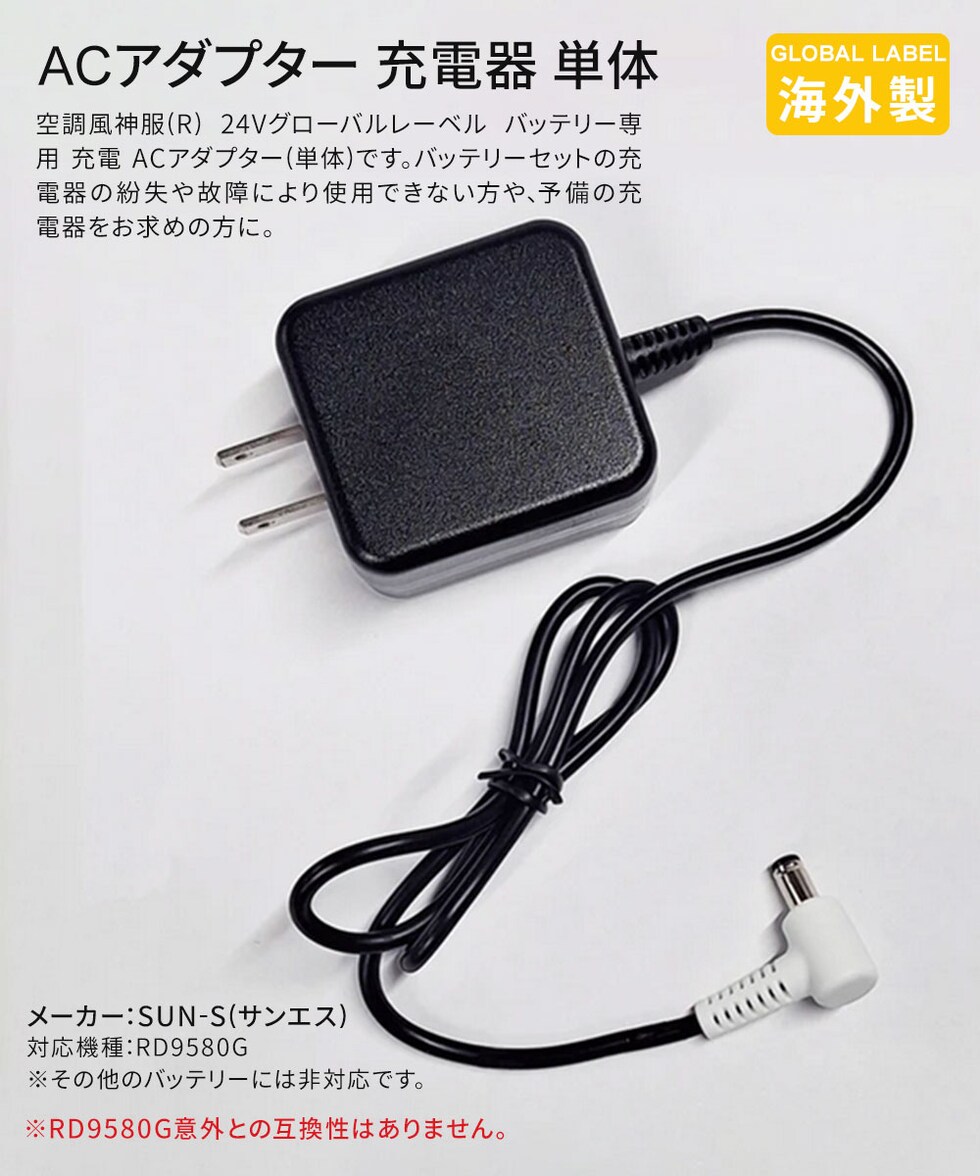リチウムイオン バッテリー 用 充電器 Global Label 24V用ACアダプター SUN-S サンエス アタックベース EFウェア 空調風神服