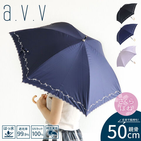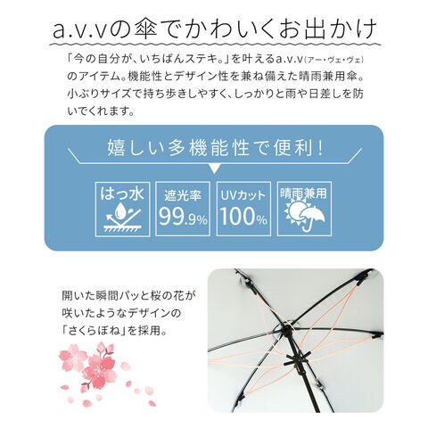 アーヴェヴェ 傘 レディース 晴雨兼用 50cm 遮光 遮熱 撥水 手開き式 桜骨 紫外線対策 雨具 レイン グッズ アンブレラ UVカットUPF50+ 643925 a.v.v