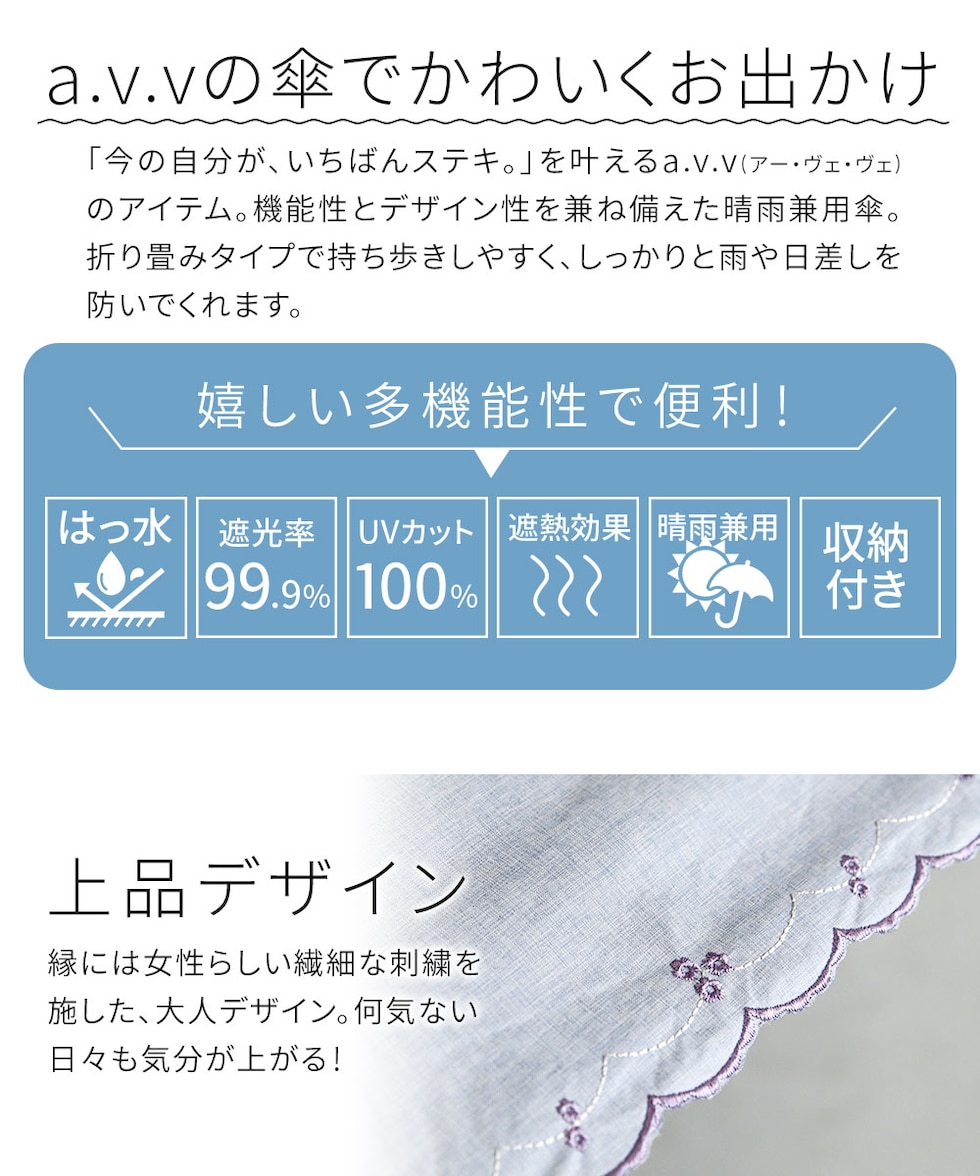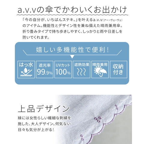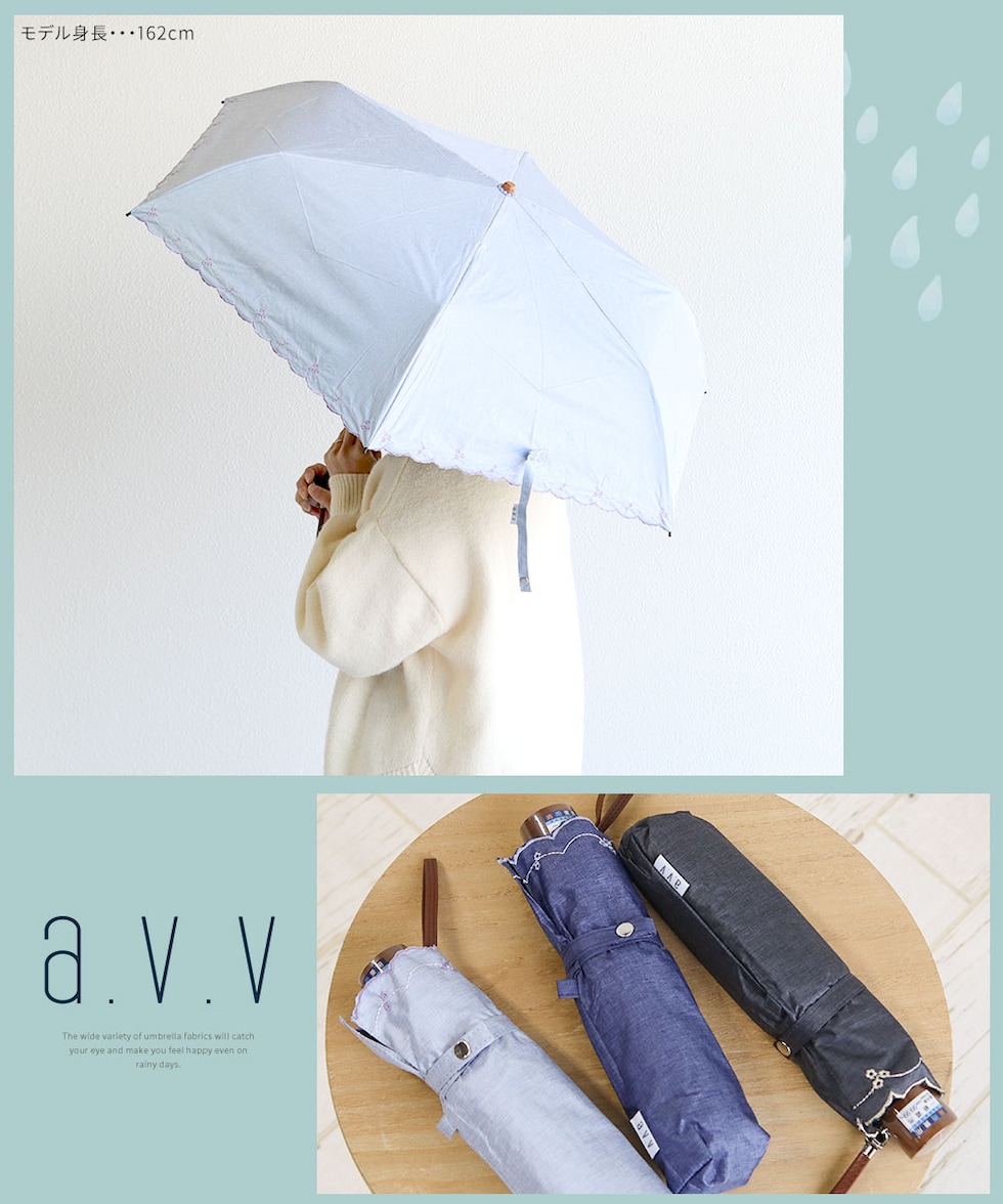 a.v.v 折りたたみ傘 軽量 晴雨兼用 50cm 小さめ かわいい おしゃれ 日傘 雨傘 黒 ブラック ブルー ネイビー アーヴェヴェ 644355