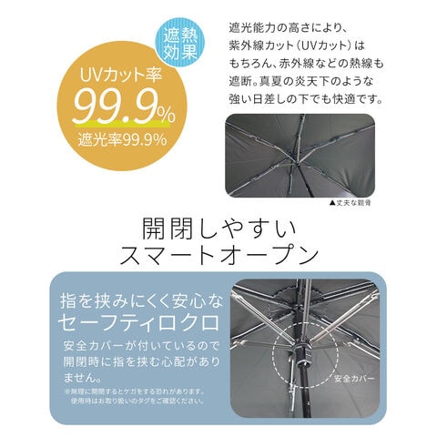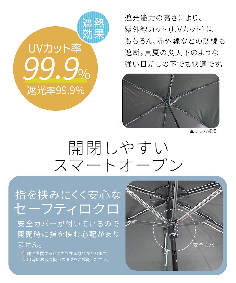 遮光能力の高さにより、紫外線カット(UVカット)はもちろん、赤外線などの熱線も遮断するため、真夏の炎天下のような強い日差しの下でもより快適に過ごすことができます。