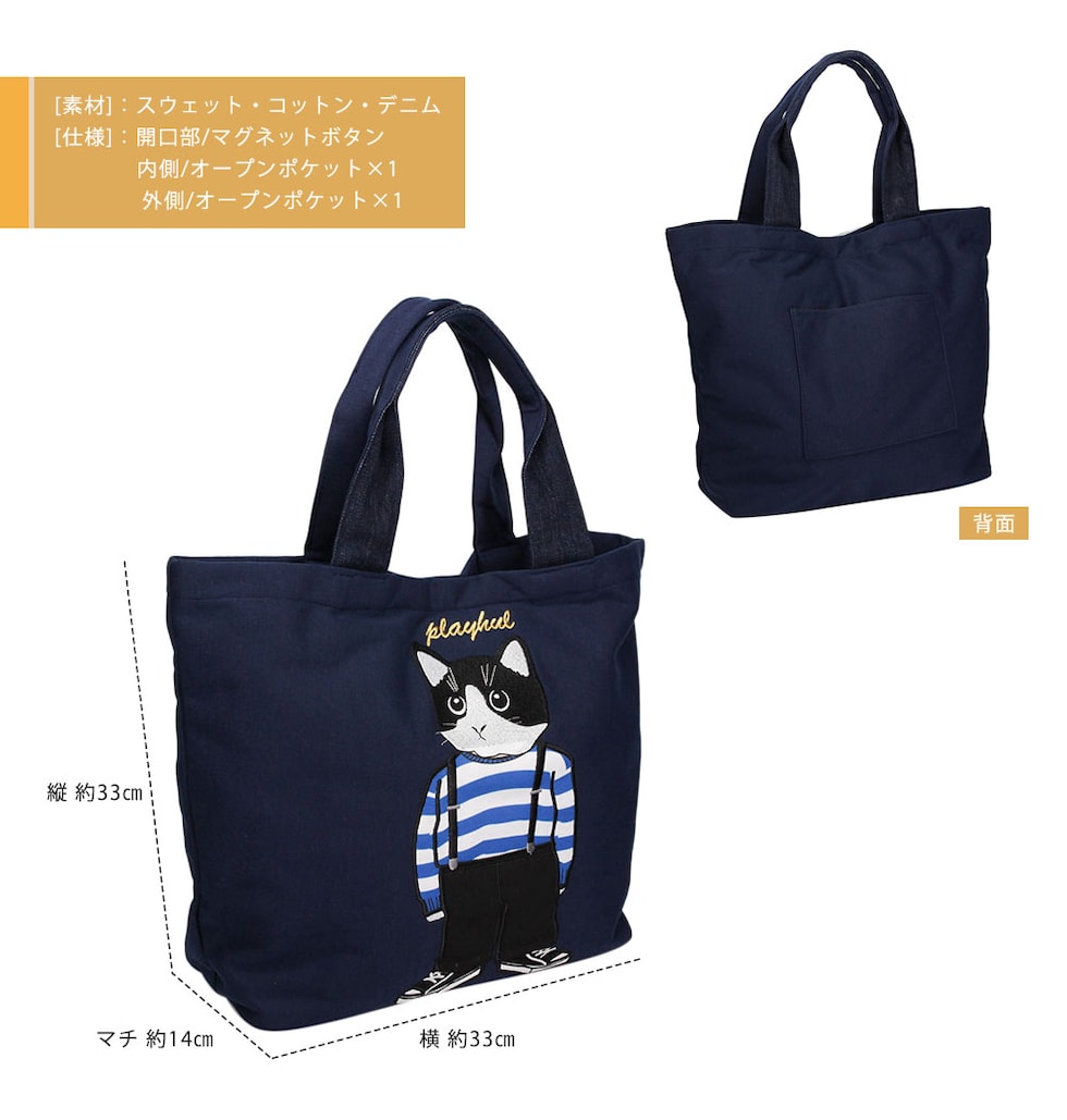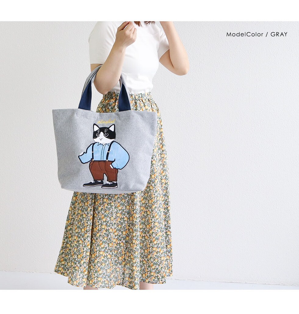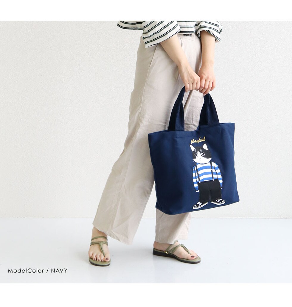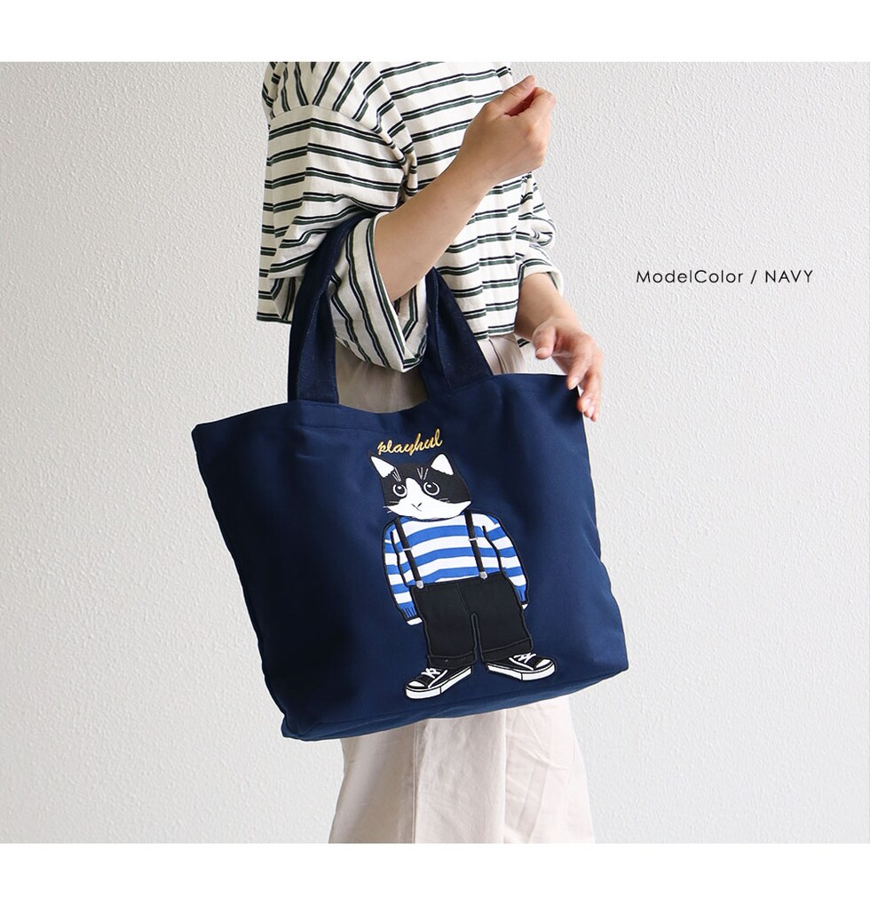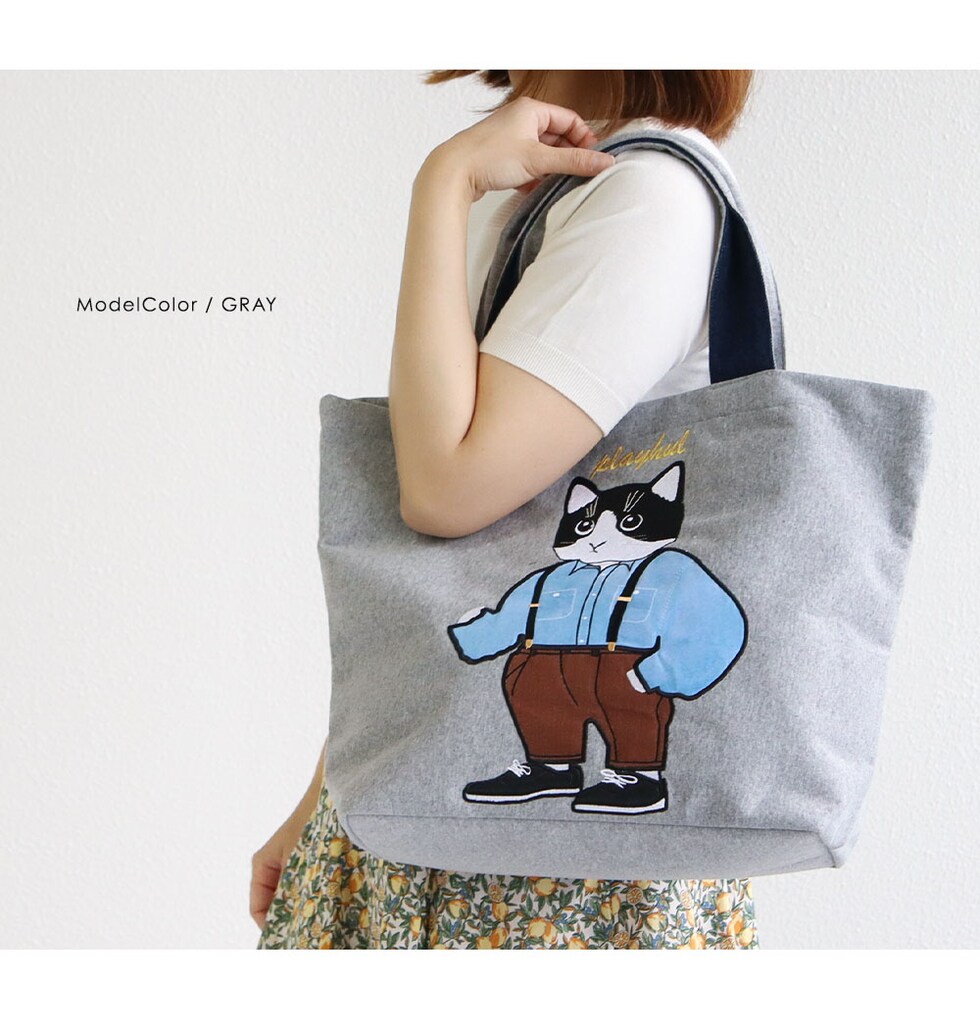 「PLAYFUL」シリーズのネコ柄トートバッグ。