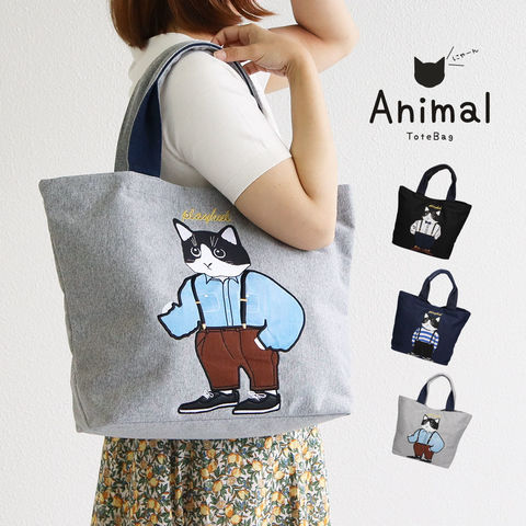 トートバッグ レディース 大きめ a4 通学 旅行 サブバッグ スウェット 軽量 トートバッグ 布 マザーバック 通勤 手提げバッグ 大人 かわいい 猫 ネコ 動物 アニマル ブラック 黒 グレー ネイビー 7229