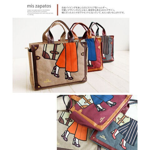 mis zapatos ショルダーバッグ 2way レディース スクエア トート ハンド b5 ファスナー付き ポケット 大人 手提げ 合皮 旅行 トランク かばん 7469 ミスサパト