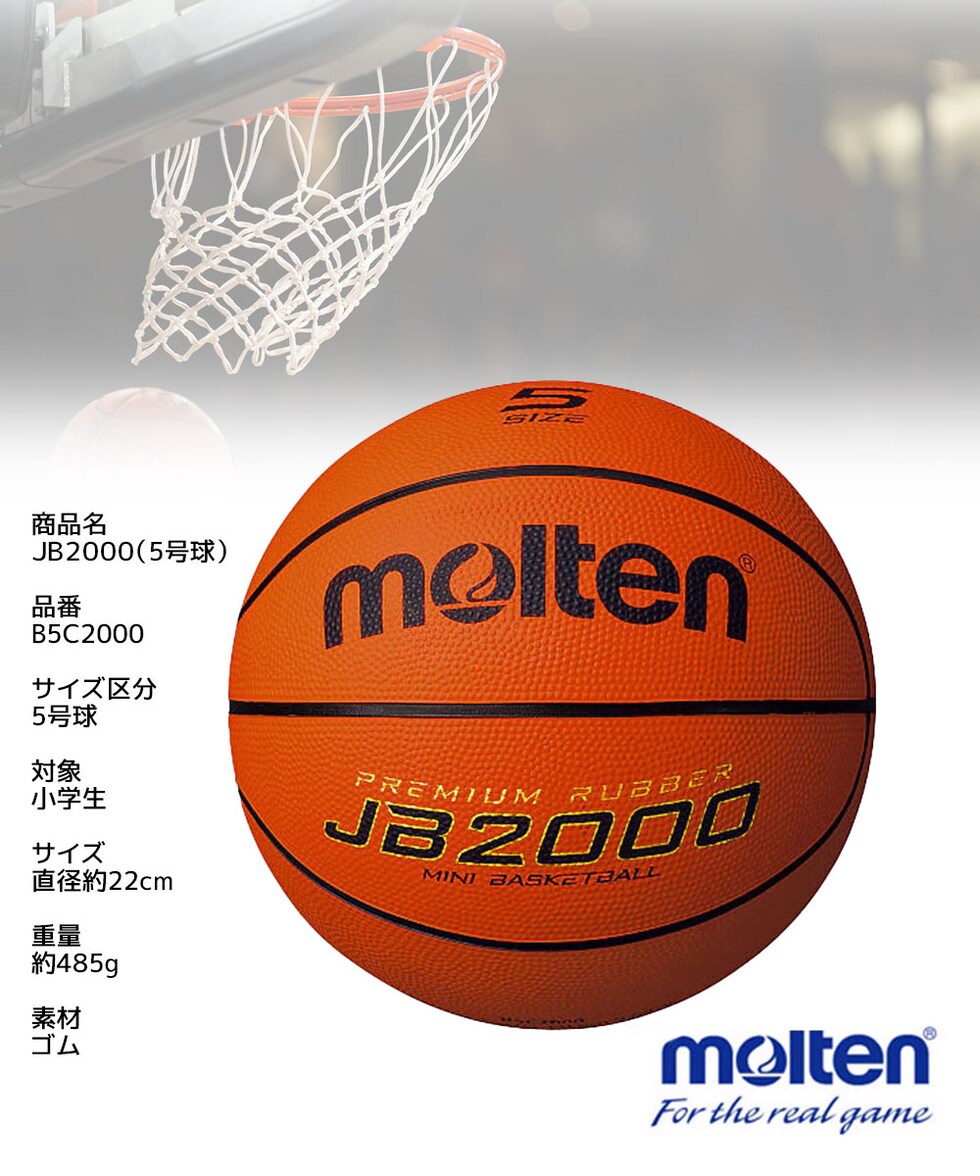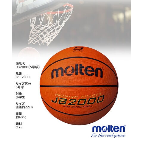 モルテン バスケットボール JB2000 5号球 B5C2000 ゴム ミニバス 小学生 男子 女子 練習 試合 molten
