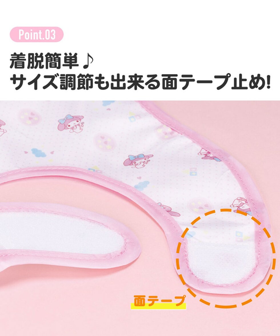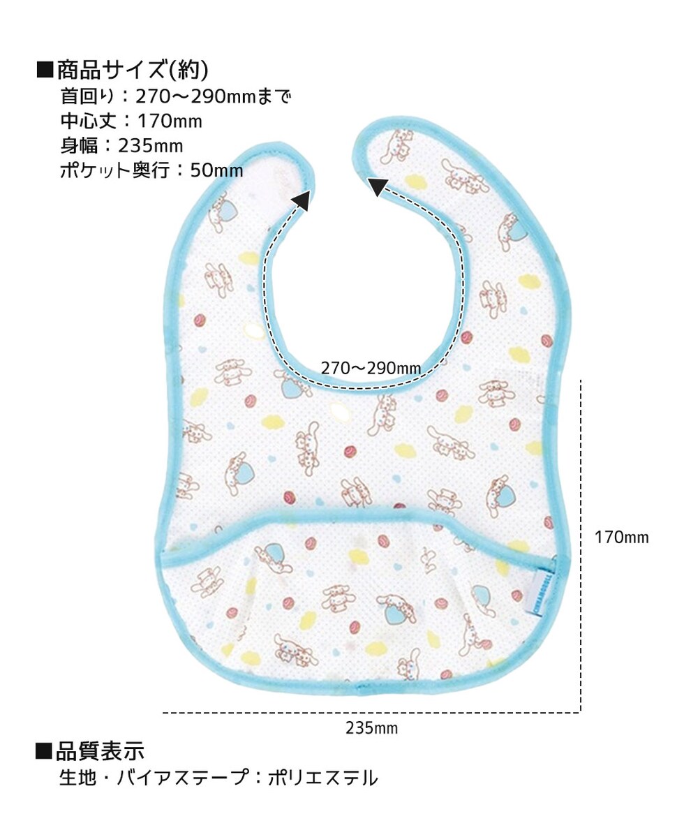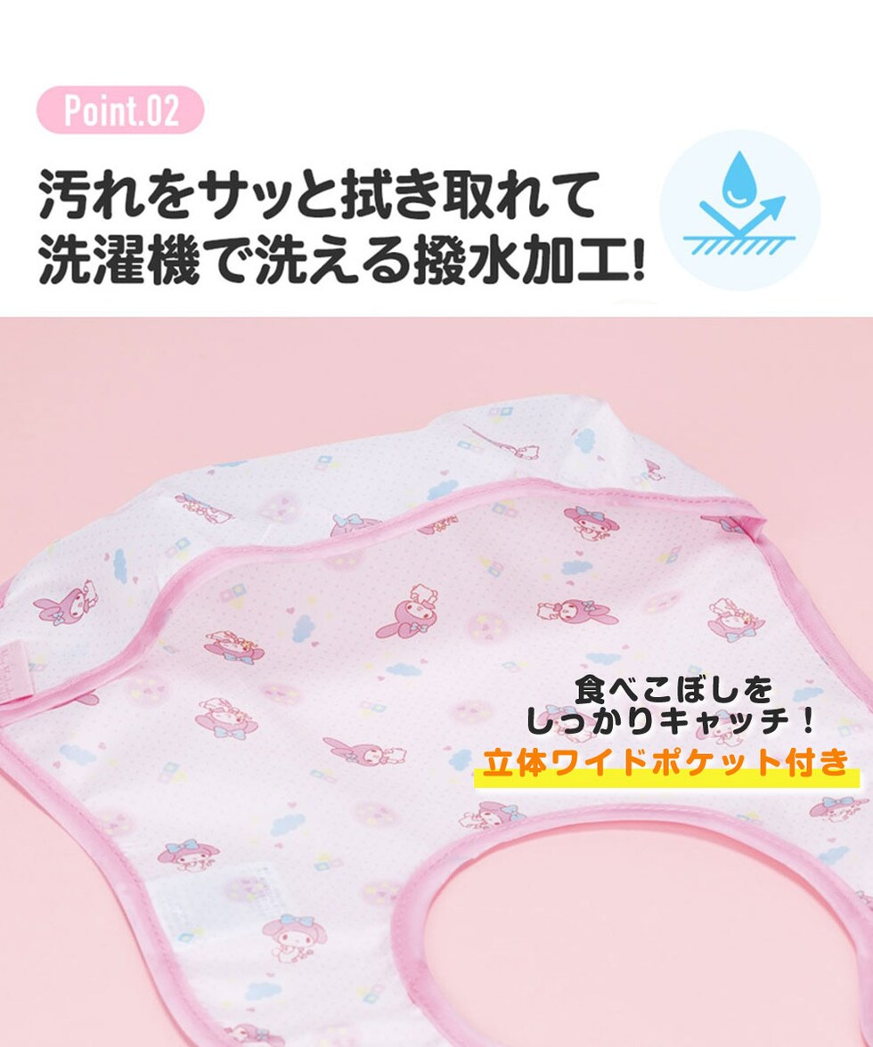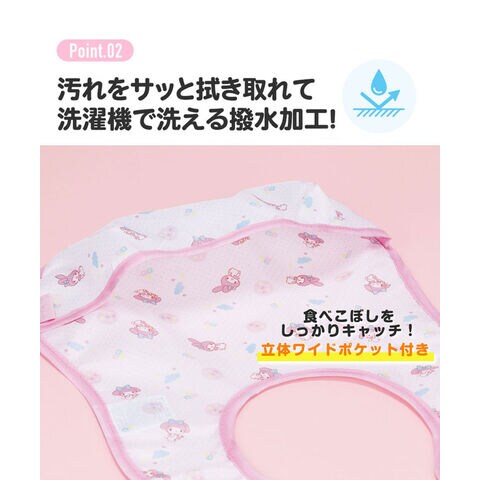 食べこぼしをしっかりキャッチする立体ワイドポケット付き。
