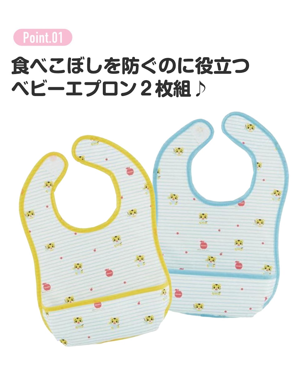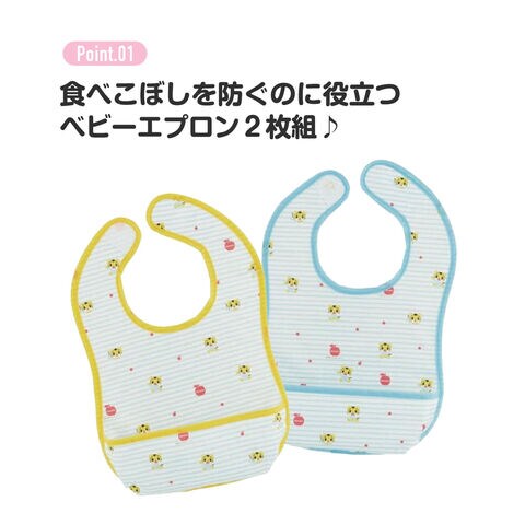 食べこぼしを防ぐのに役立つベビーエプロン2枚組♪