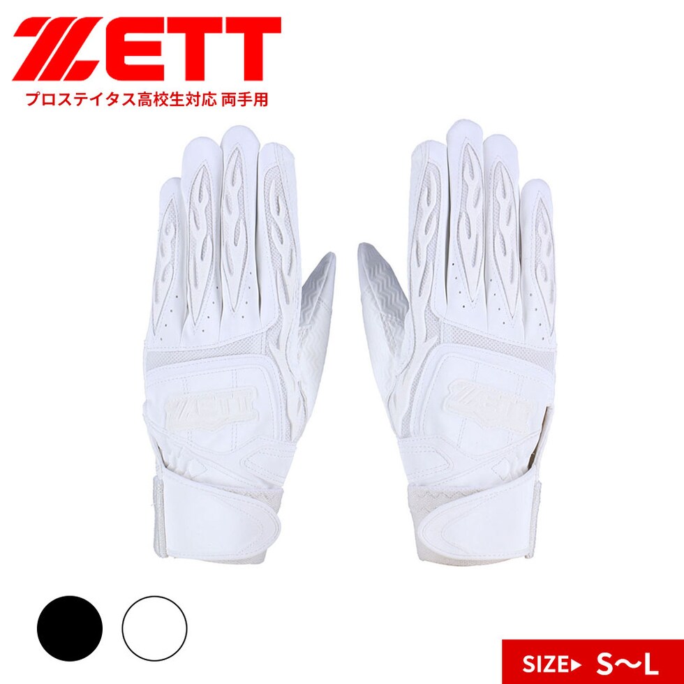 ゼット 野球 バッティング グローブ 両手 グラブ 高校野球 ルール対応 手袋 ベースボール 白 黒 プロステイタス bg418hs ZETT