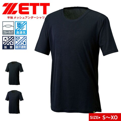 ゼット アンダーシャツ 半袖 服 野球 丸首 クールZ メッシュ 吸汗 速乾 軽量 ストレッチ スポーツ インナー 黒 紺 ZETT BO1210G
