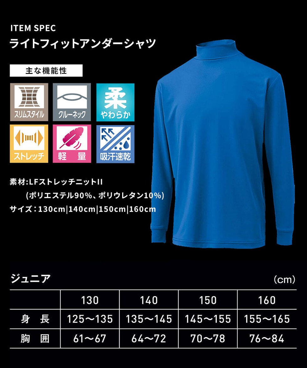 着心地にとことんこだわり開発されたLFストレッチニットIIは吸汗速乾性にも優れ、最高の着用感を感じる事ができます。
