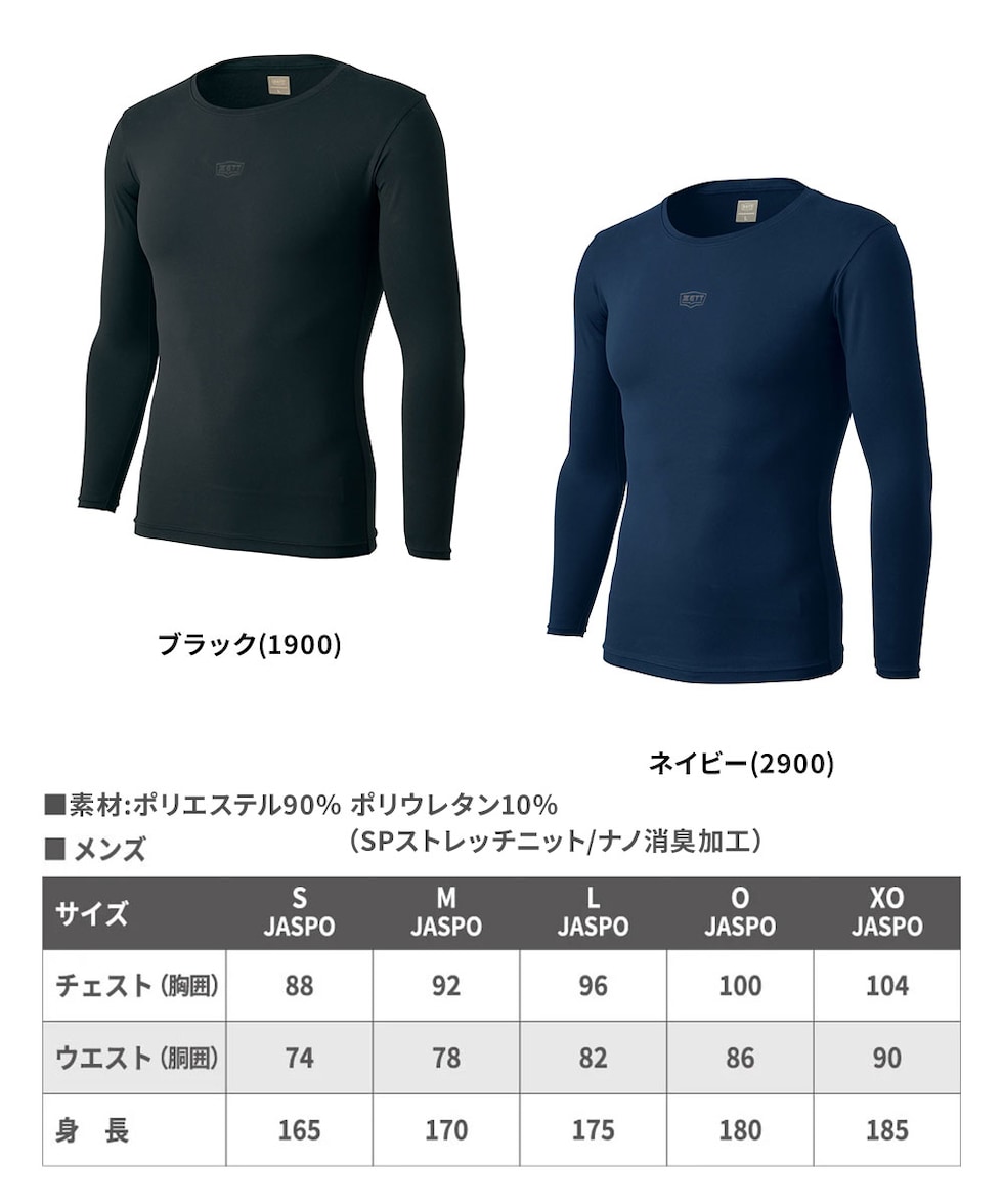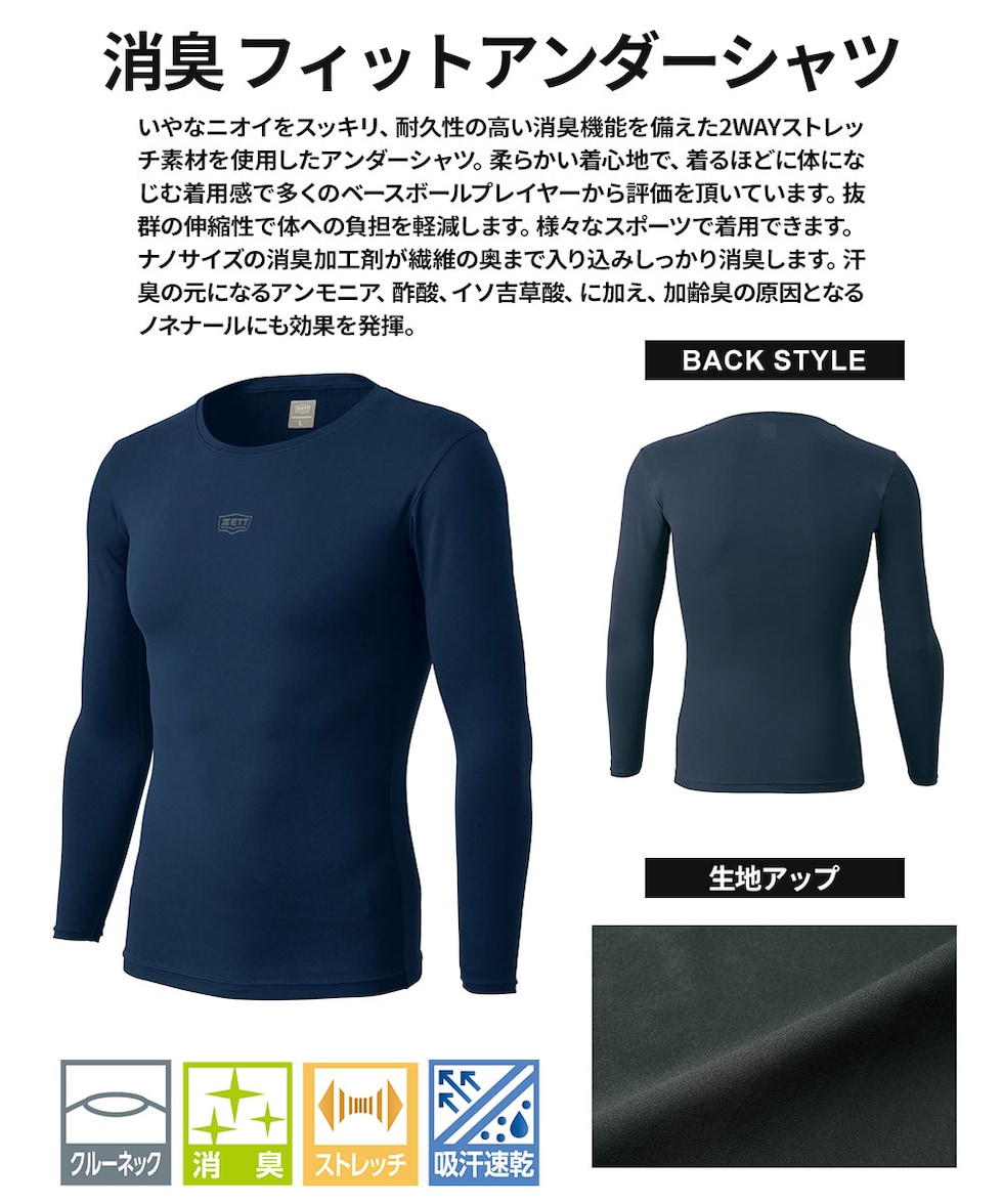 ゼット アンダーシャツ 野球 ベースボール 長袖 消臭 吸汗速乾 ストレッチ フィット スポーツ インナー クルーネック BO98201NC
