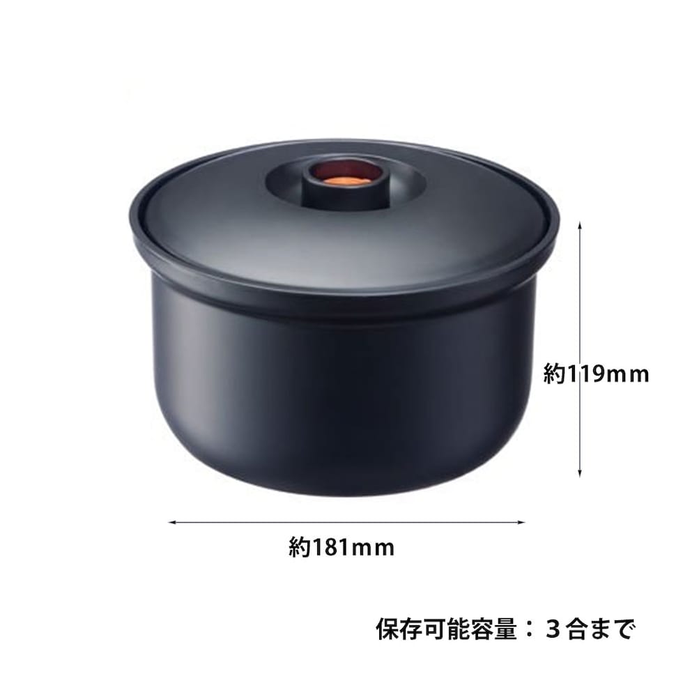 おひつ 真空保存 3合 残りご飯 レシピ付き お櫃 容器 入れ物 スノコ付き レンジ 蒸し器 キッチン用品 節約 電子レンジ 食洗器 黒 BOH3のレビュー