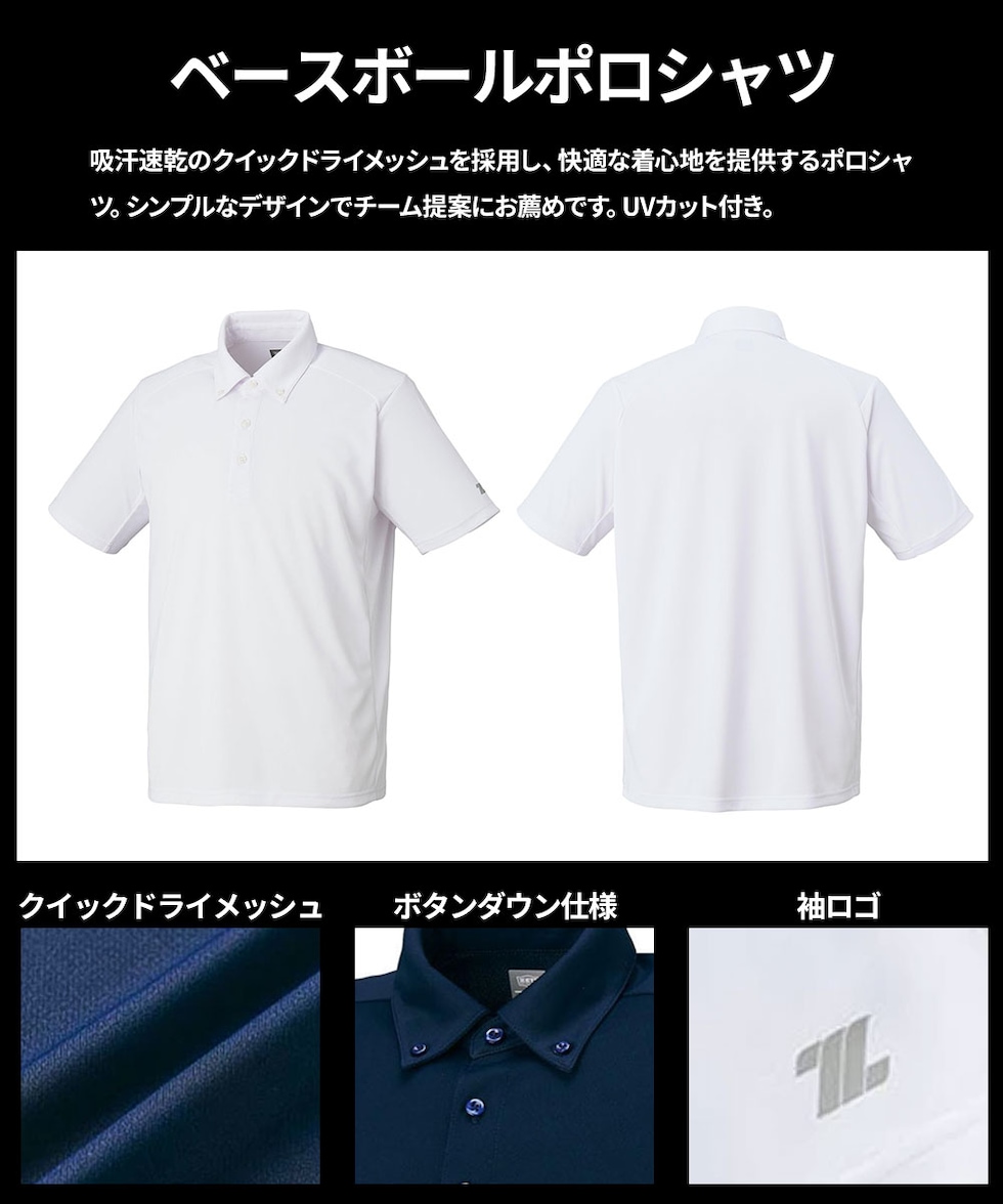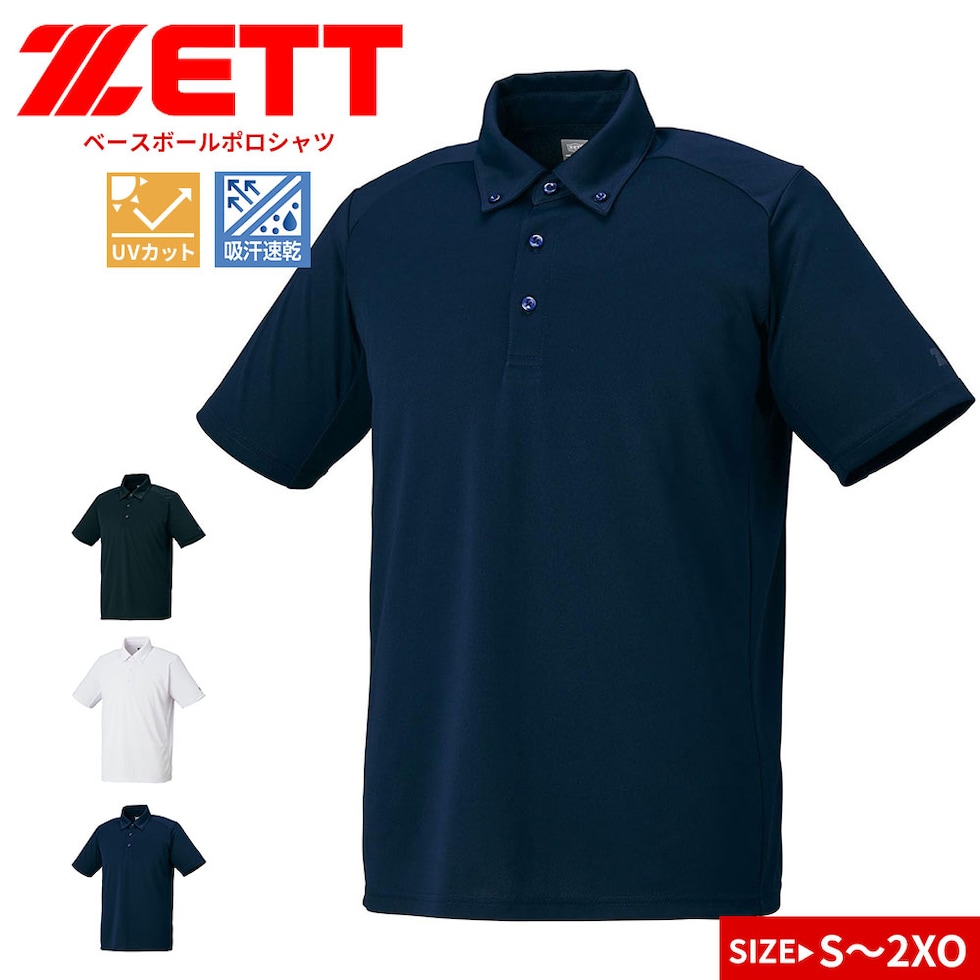ゼット ポロシャツ メンズ 野球 ソフトボール ベースボール 半袖 ユニフォーム地 シンプル 黒 白 ブラック ホワイト ZETT bot84