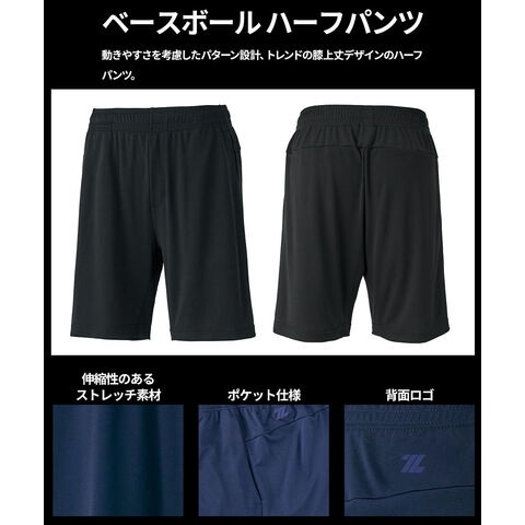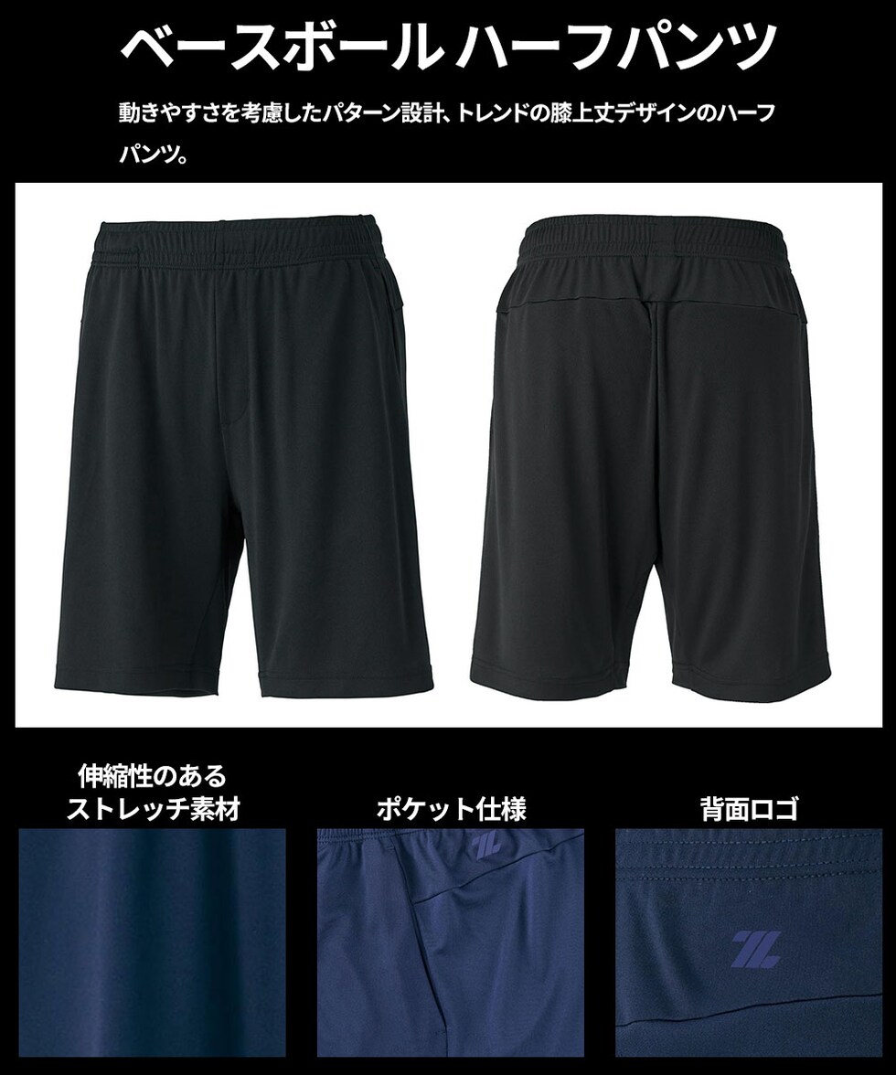 ゼット ハーフパンツ メンズ 野球 ソフトボール ベースボール トレーニング 膝上丈 無地 黒 ブラック ネイビー ZETT bp818hp