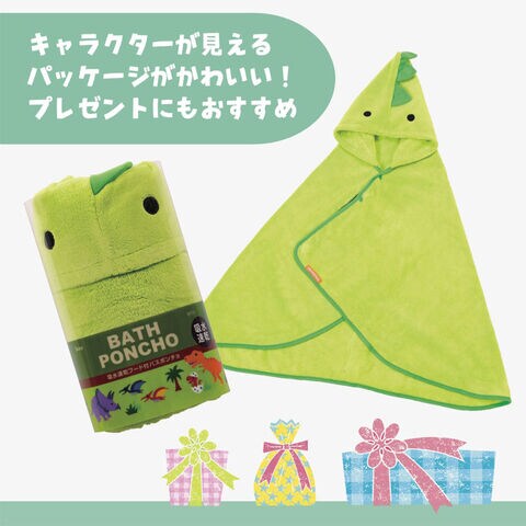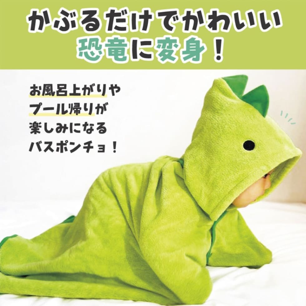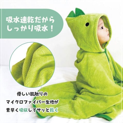 バスポンチョ キッズ 吸水速乾 マイクロファイバー キャラクター フード付き ローブ タオル 赤ちゃん 出産祝い 男の子 子供用 恐竜 BPO1