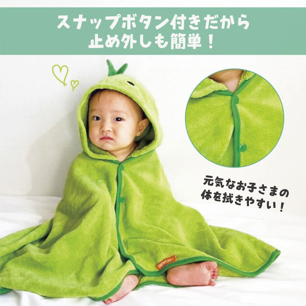 フード付きですっぽり体を覆えるため動き回る子供の体を拭きやすい!
