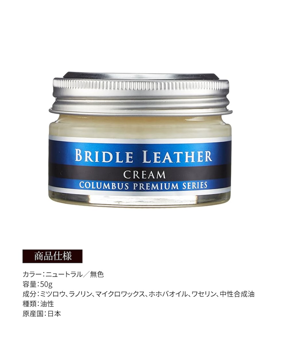 コロンブス ブライドルレザー 革小物 鞄 保革 専用クリーム 透明ワックス膜 乾燥防止 ニュートラル 無色 塗布クロス付き 日本製 COLUMBUS