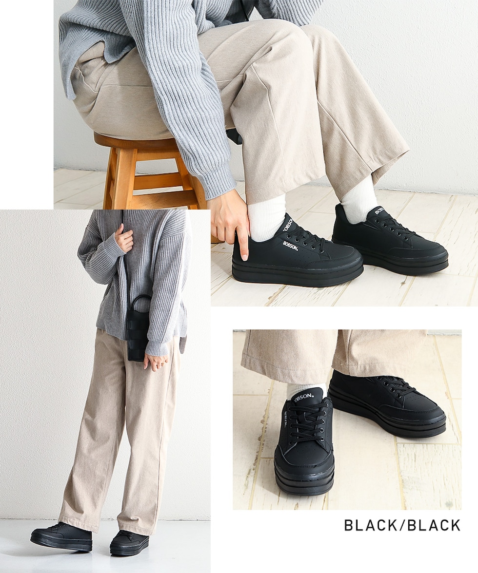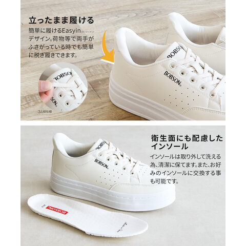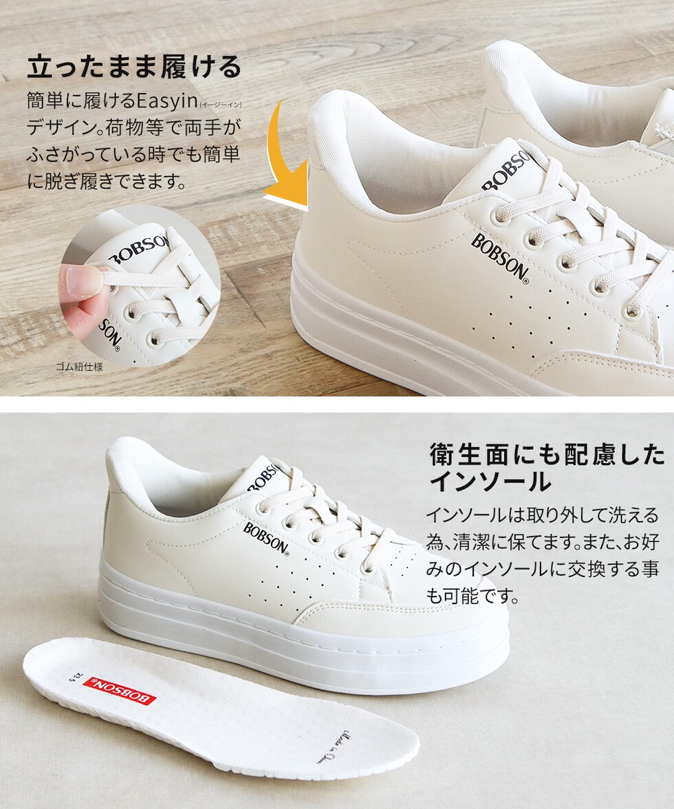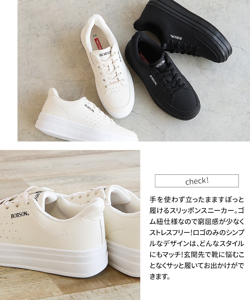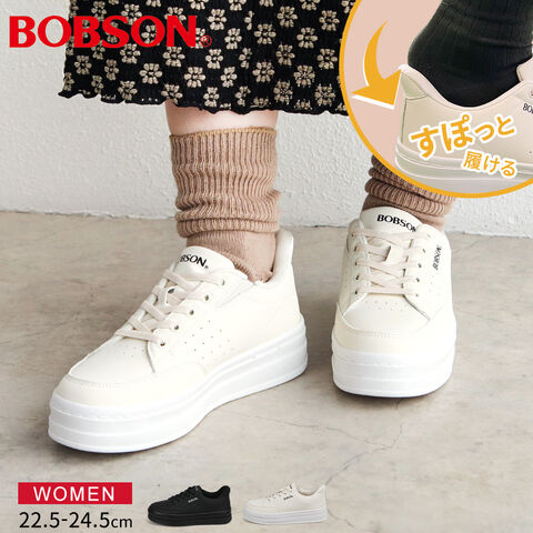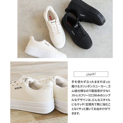 ボブソン スニーカー レディース 厚底 靴 スリッポン 軽量 ハンズフリー おしゃれ カジュアル ブラック ホワイト BOBSON 0013