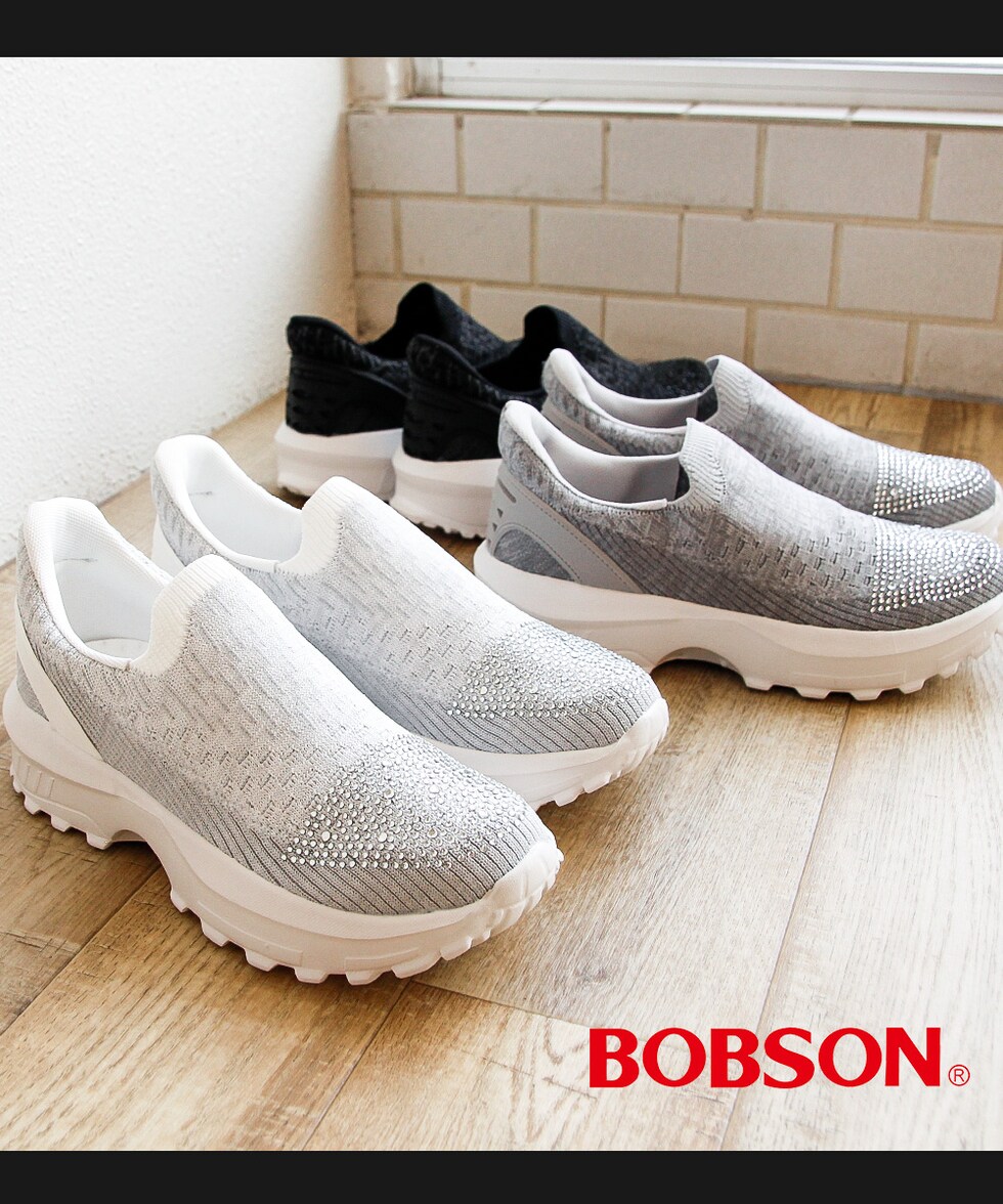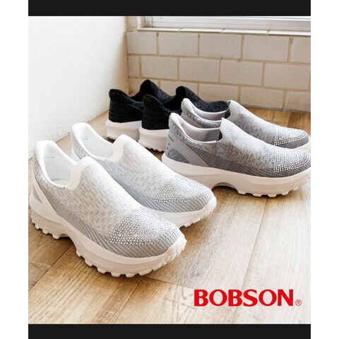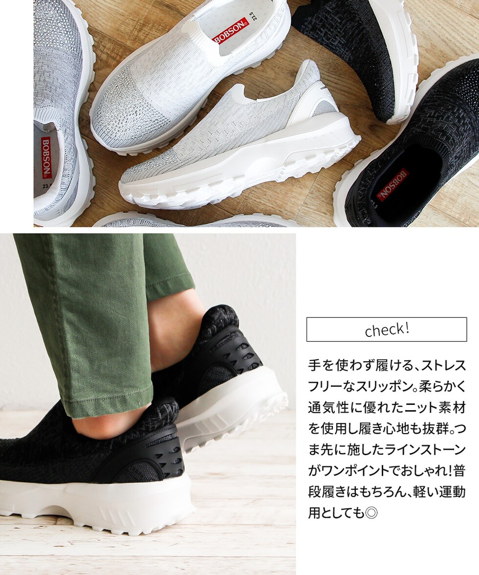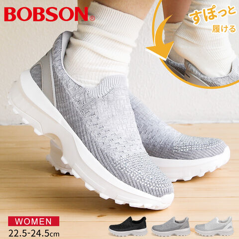 ボブソン スリッポン レディース ローカット 歩きやすい 軽量 ハンズフリー 靴 ニット 黒 ブラック グレー 白 ホワイト BOBSON 0048