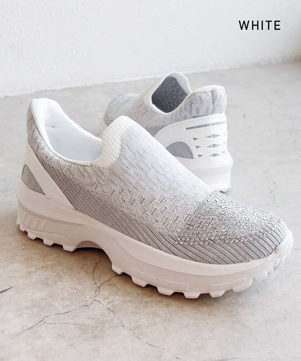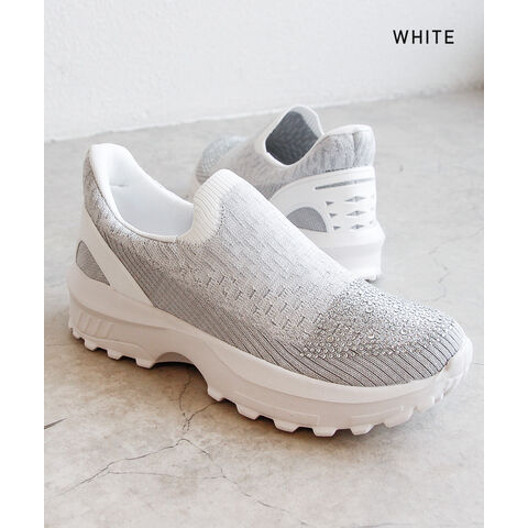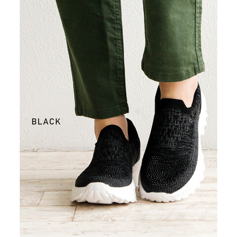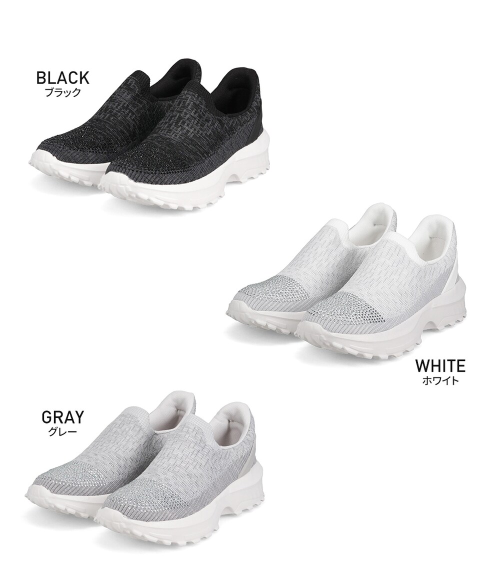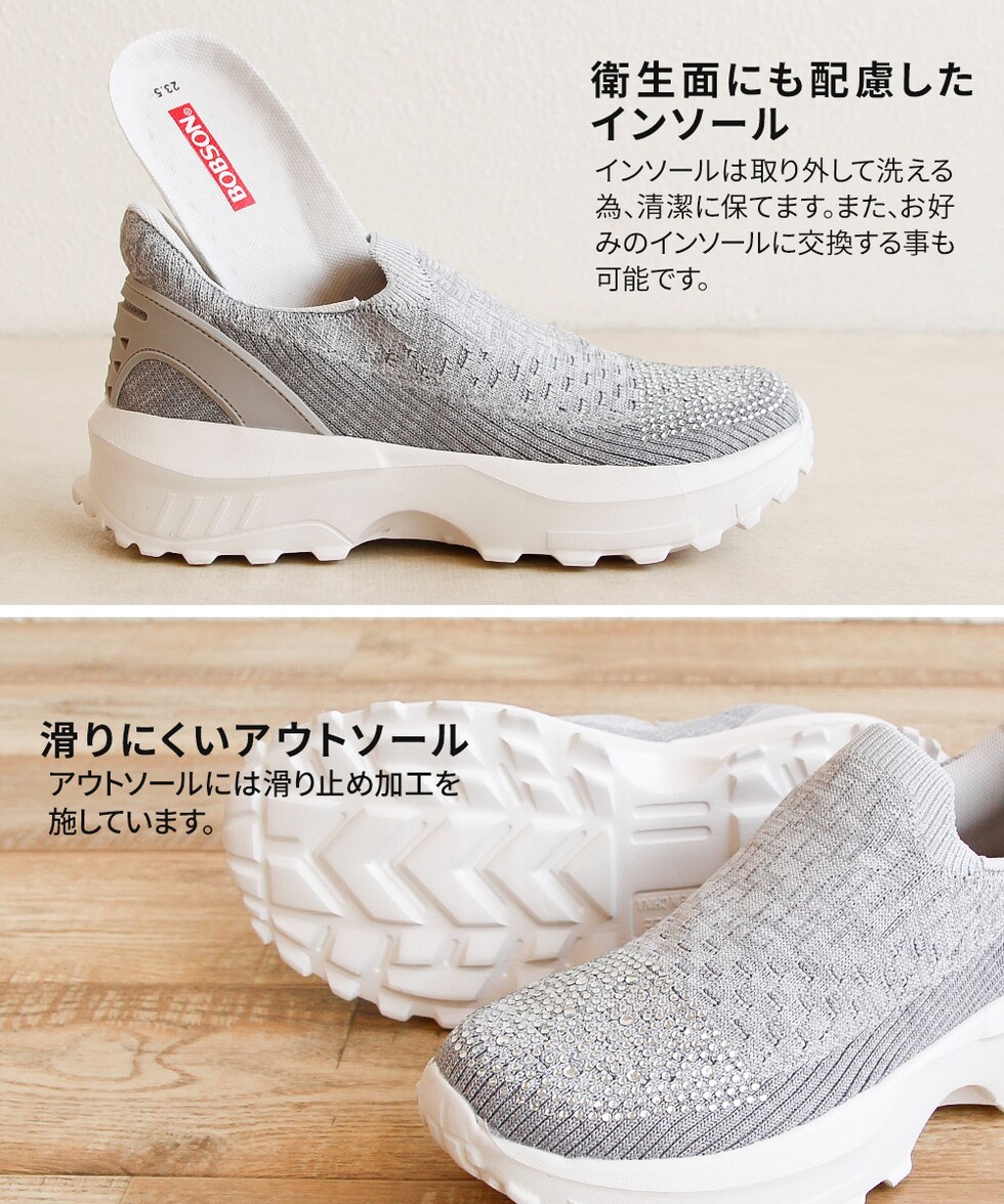 ボブソン スリッポン レディース ローカット 歩きやすい 軽量 ハンズフリー 靴 ニット 黒 ブラック グレー 白 ホワイト BOBSON 0048