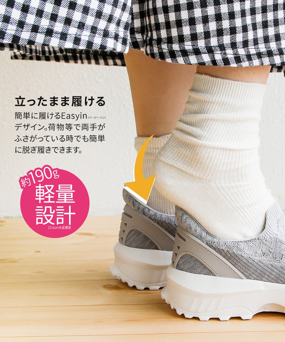 柔らかく通気性に優れたニット素材を使用しストレスフリーで快適な履き心地。