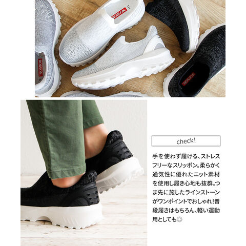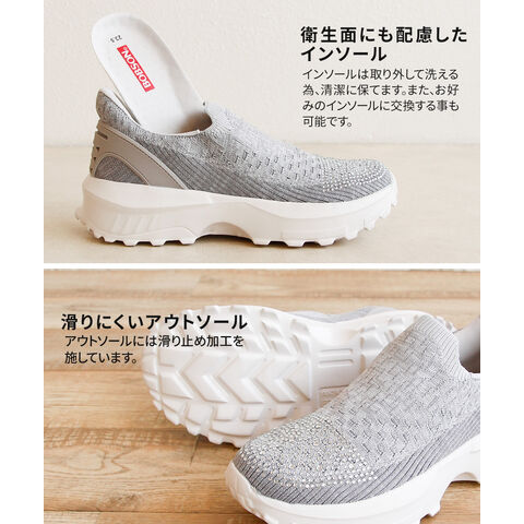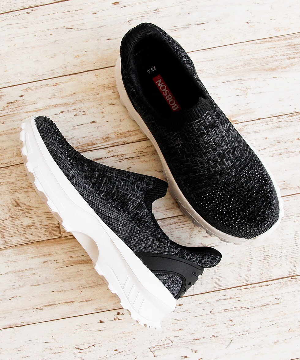 ボブソン スリッポン レディース ローカット 歩きやすい 軽量 ハンズフリー 靴 ニット 黒 ブラック グレー 白 ホワイト BOBSON 0048のレビュー