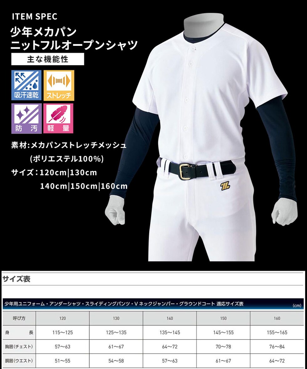 ゼット ユニフォーム 練習用 試合用 キッズ ジュニア 子供用 少年野球 トレッチ スポーツ 無地 シンプル 白 ホワイト ZETT BU2281Sのレビュー