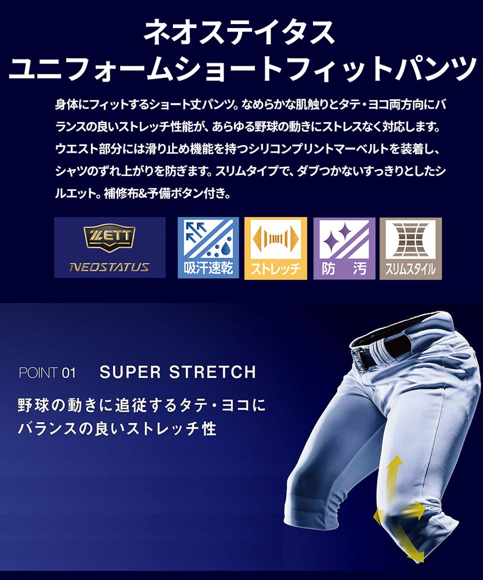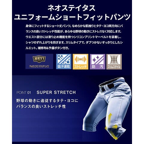 ゼット レギュラーフィットパンツ ユニフォーム 練習用 試合用 メンズ 野球 スポーツ 無地 白 ホワイト ZETT ネオステイタス BU812CP