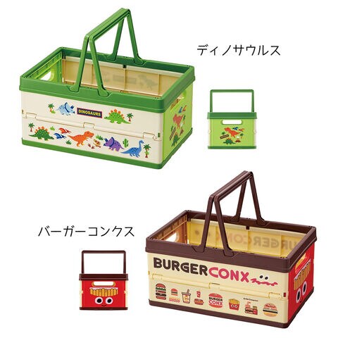 折りたたみ バスケット 収納ボックス 積み重ね スタッキング コンパクト おもちゃ箱 コンテナ 取っ手付き 小物入れ 子供 キッズ 恐竜 BWOT13