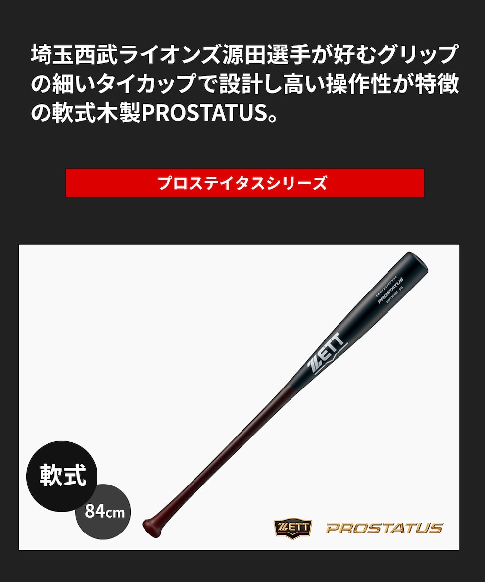 ■埼玉西武ライオンズ源田選手が好むグリップの細いタイカップで設計し高い操作性が特徴の軟式木製PROSTATUS。