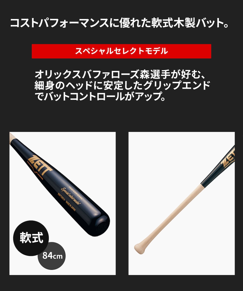 ゼット 野球 バット 軟式 木製 84cm 日本製 大人 スポーツ アウトドア スペシャルセレクトモデル ZETT ベースボール BWT39514