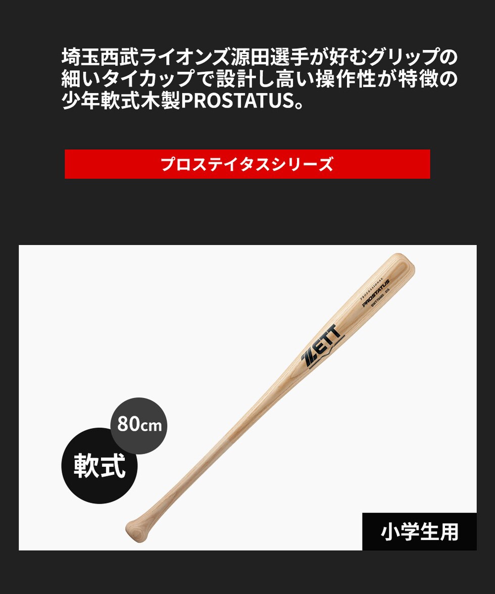■埼玉西武ライオンズ源田選手が好むグリップの細いタイカップで設計し高い操作性が特徴の少年軟式木製PROSTATUS。