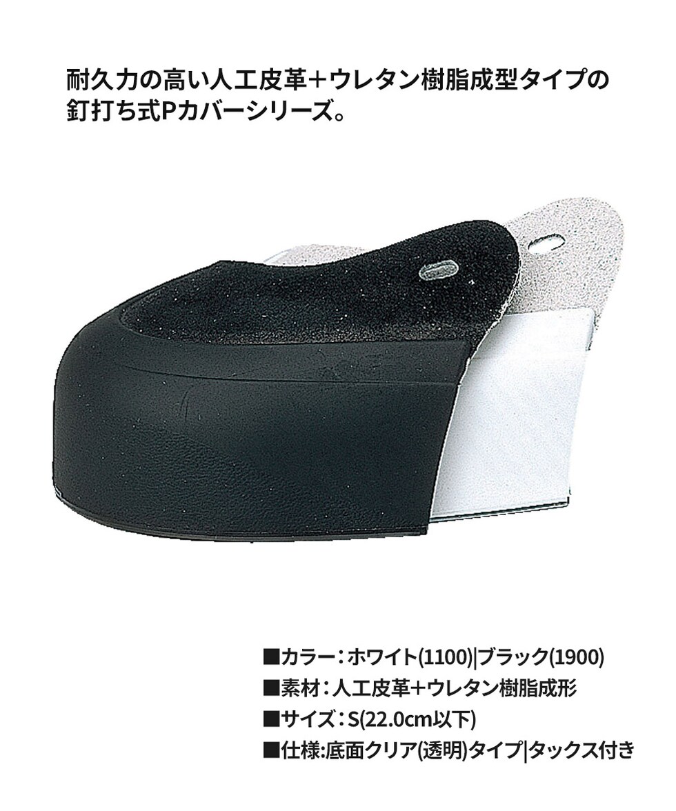 耐久力の高い人工皮革+ウレタン樹脂成型タイプの釘打ち式Pカバーシリーズ。サイズ、右・左用により10種類をラインナップ。