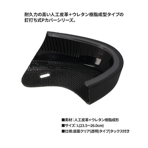 耐久力の高い人工皮革+ウレタン樹脂成型タイプの釘打ち式Pカバーシリーズ。サイズ、右・左用により10種類をラインナップ。