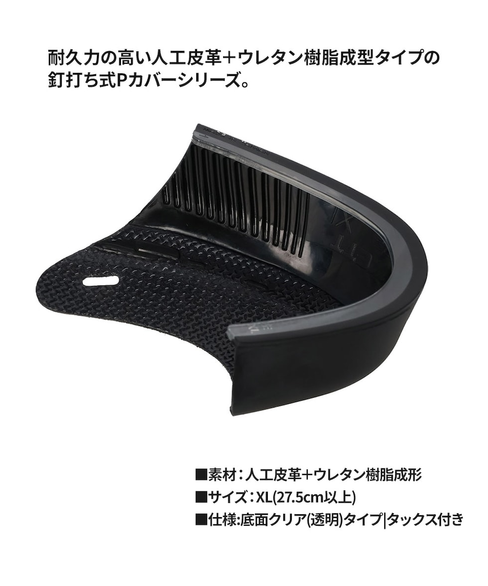 耐久力の高い人工皮革+ウレタン樹脂成型タイプの釘打ち式Pカバーシリーズ。サイズ、右・左用により10種類をラインナップ。