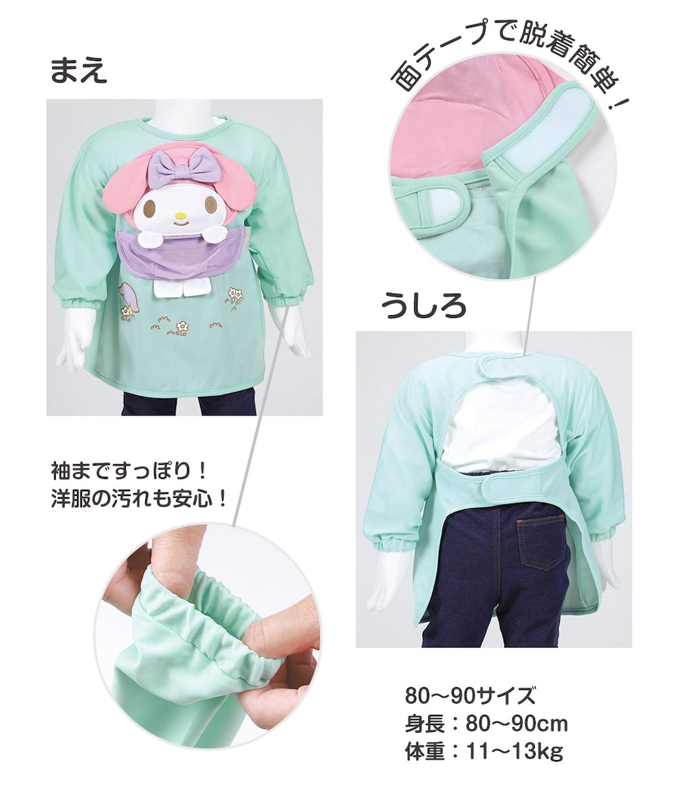 ベビーエプロン 長袖 食事 キャラクター 撥水 ポケット付き 食べこぼし 汚れ 防止 洗濯可 子供 女の子 80cm 90cm 丈夫 綿100% 入園準備 丸洗い CBAEP2