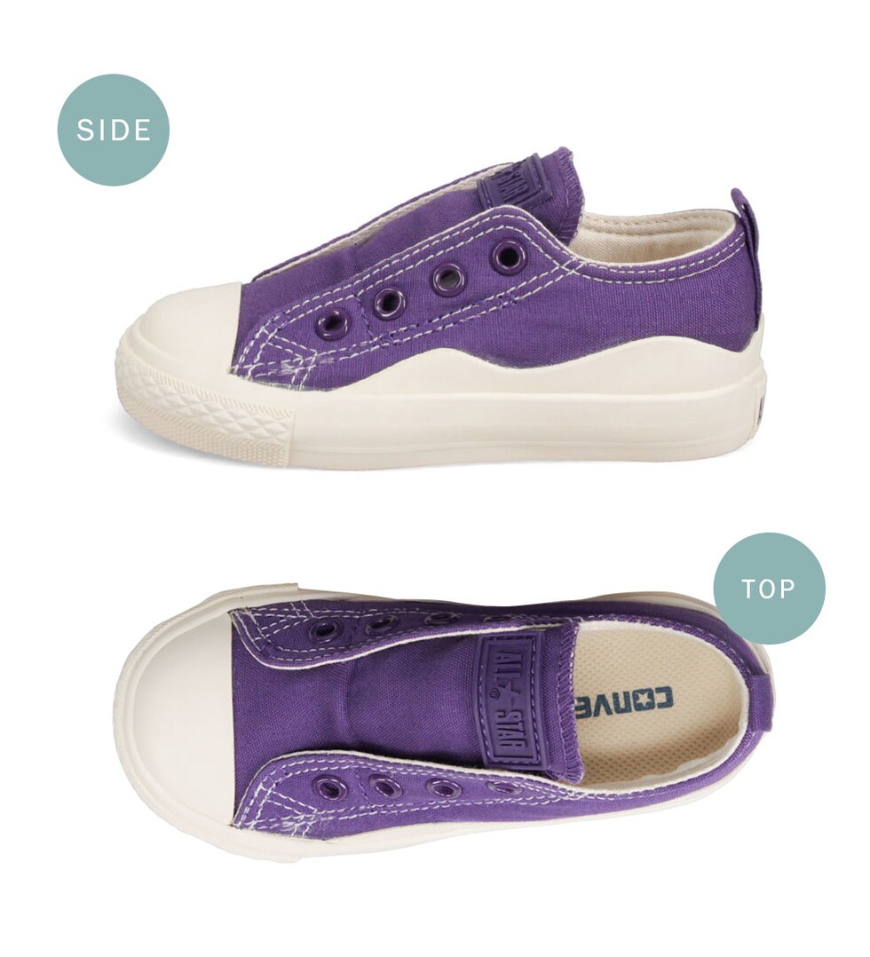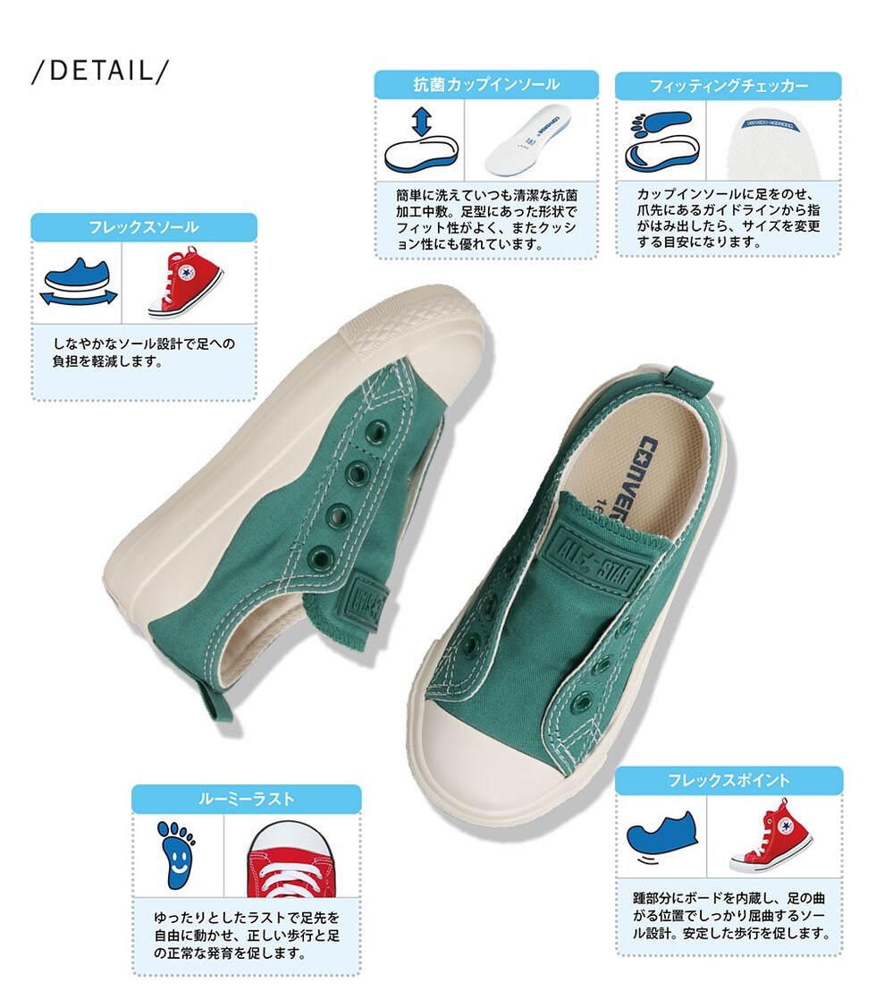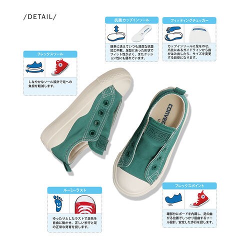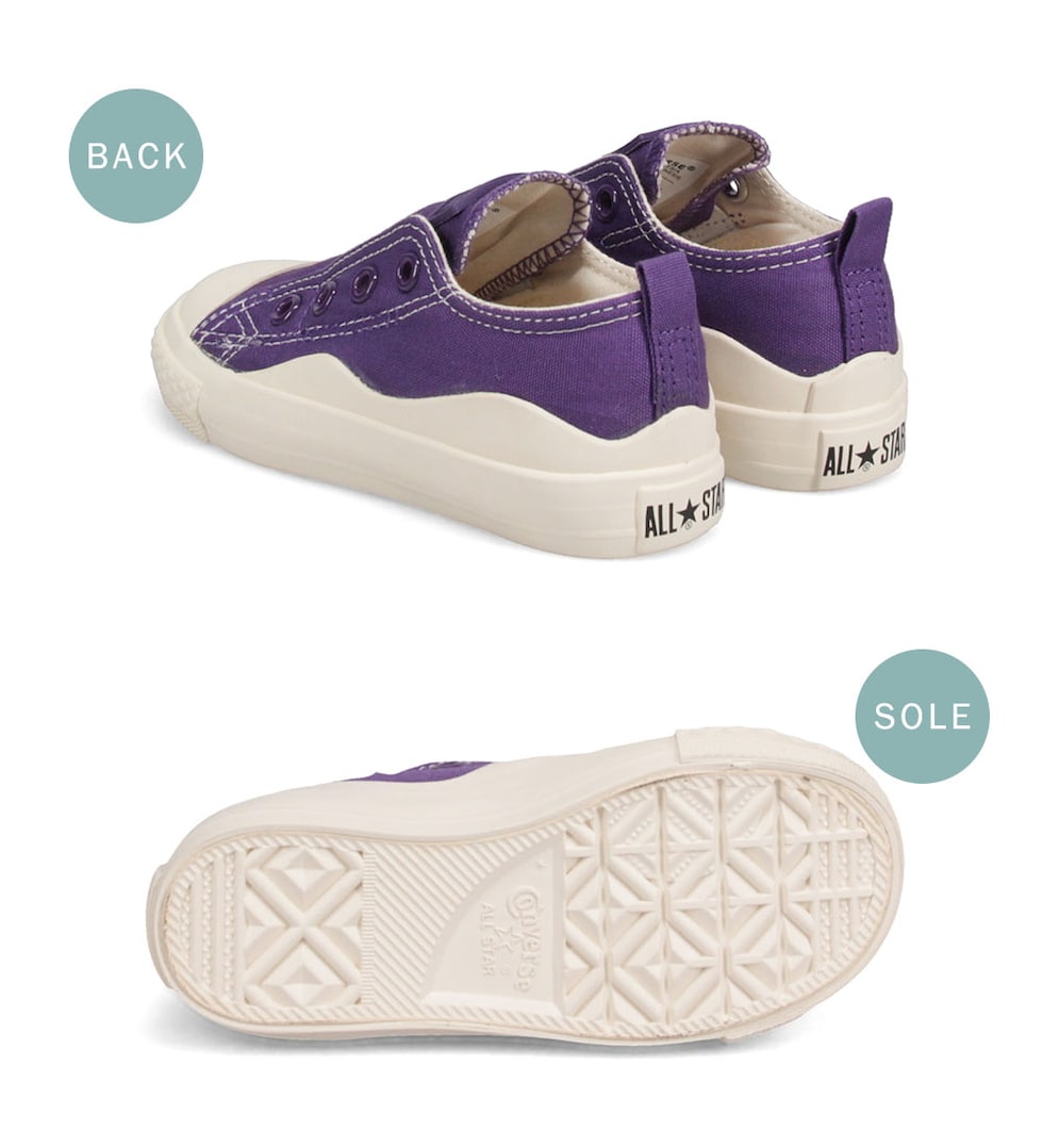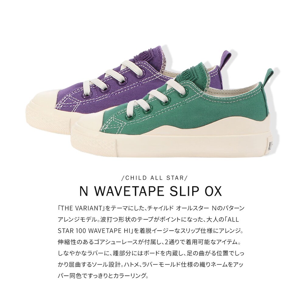 コンバース キッズ スリッポン ローカット スニーカー チャイルド オールスター ウェーブテープ スリップ 子供靴 紐靴 ジュニア シューズ 紐付き ゴム紐 シューレース 替え紐 2way 通学 パープル グリーン CHILD ALL STAR N WAVETAPE SLIP OX